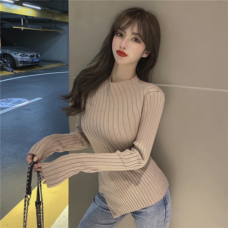 (3色選択可) レディース ニット おしゃれ シンプル ゆったり 純色 暖かい 着痩せ 伸縮性有り 黒 白 カーキ ホワイト ブラック デザイン インナー 大人 長袖 細身 上品 かっこいい モテ 抜け感 クール 着やすい ワンサイズ 白トップス 黒トップス 襟なし 丸襟 こなれ感 大人女子 モテ ギフト こなれ感 定番 トレンド | Chère