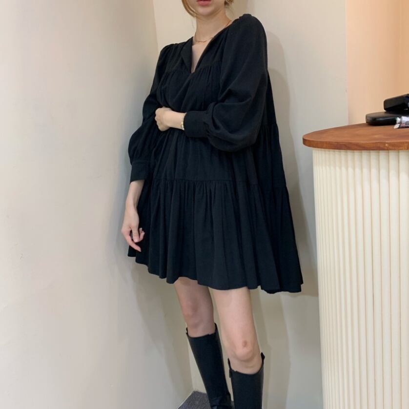 (3色選択可) レディース ワンピース ブラウス シャツワンピース Vネック 膝上 シンプル シック ホワイト ブラック カーキ カジュアル かわいい 可愛い 大人かわいい 大人可愛い デート 女子会 お出かけ 20代 30代 40代 大人女子 韓国 | Chère