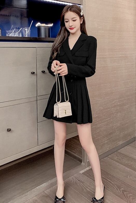 (色とサイズ選択可) レディース ダブルブレスト ワンピース セットアップスーツ 長袖 襟付き フォーマル 通勤 パーティー ジャケット ダブルボタン プリーツスカート スカート 大人女子 こなれ感