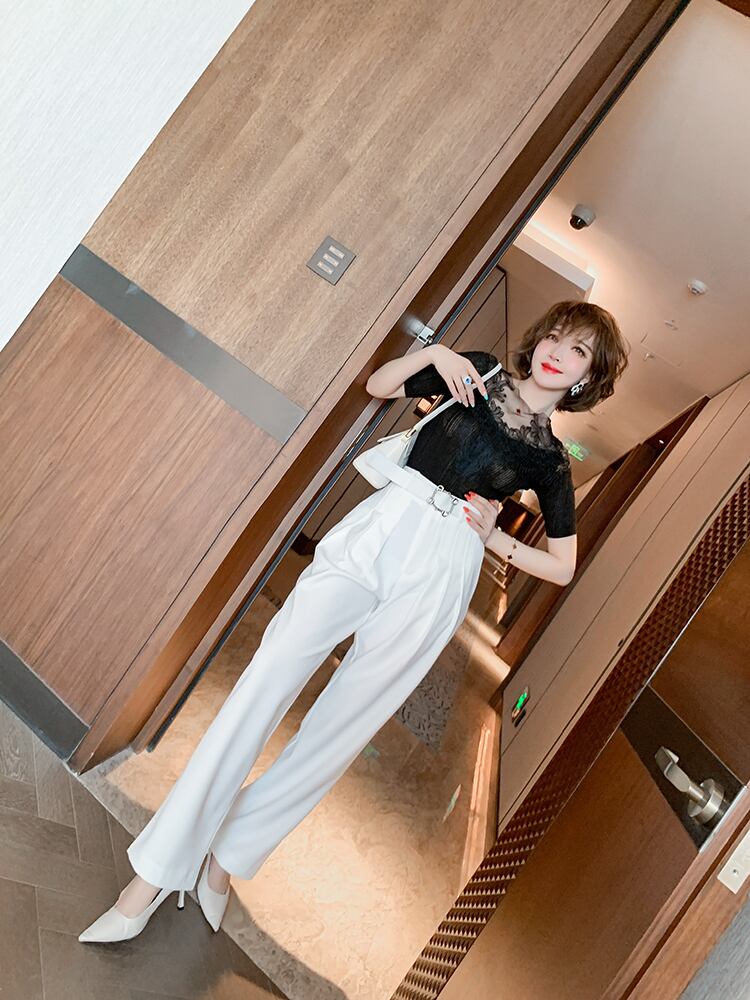 プリーツなセンタープレスで脚長効果も期待できる、ハイウエストなストレートパンツ。ゆったり上品で落ち着いたデザインは場面を選びません。