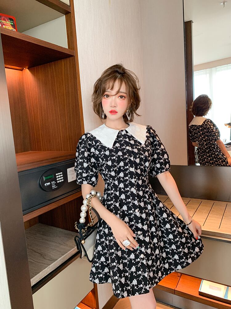 (サイズが選択可) レディース ワンピース Aラインワンピース フレアワンピース ミニワンピース ミニ丈 膝上 襟付き 半袖 パフスリーブ 花柄刺繍 花柄 フラワー Aライン フレア 可愛い 上品 きれいめ シンプル カジュアル 大人 かわいい おしゃれ 大人可愛い 大人女子 エレガント 小さいサイズ XS 大きいサイズ 3XL ブラック 黒 春 夏 10代 20代 30代 通勤 デート お出かけ 女子会 パーティー | Chère