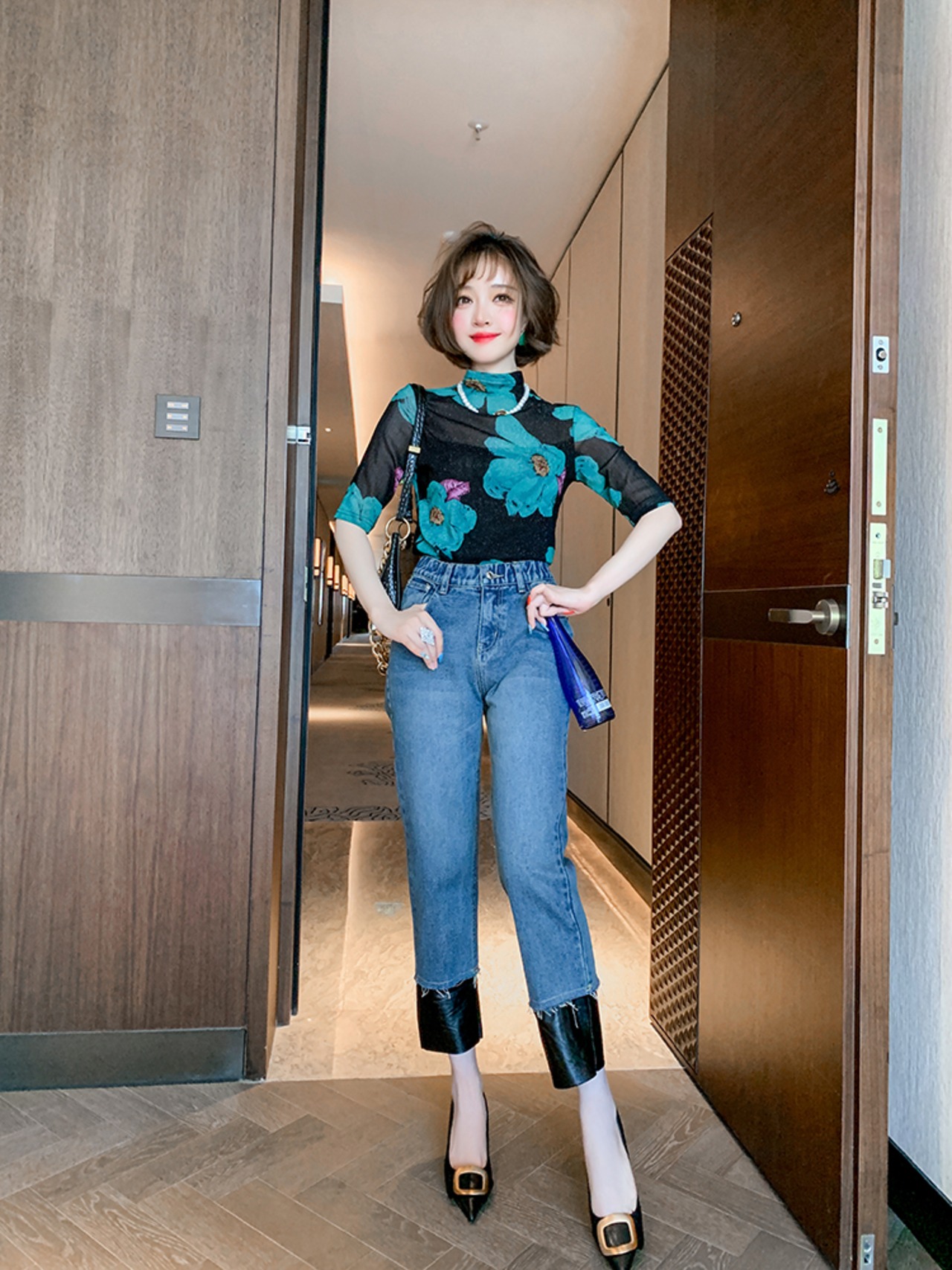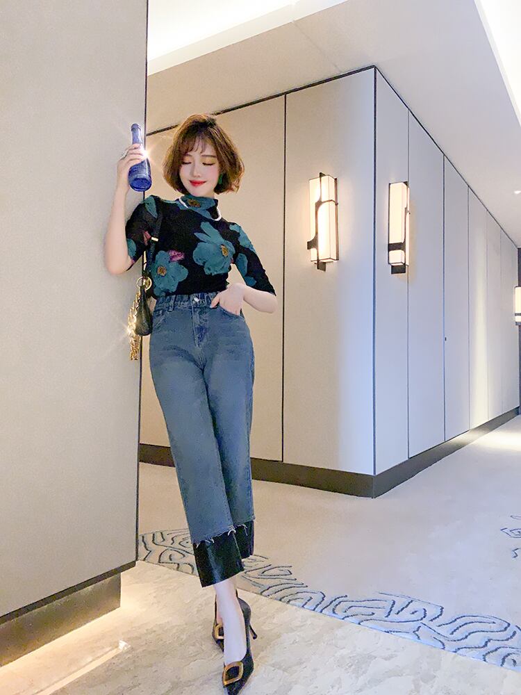 フラワープリントが印象的な、ハイネックのトップスです♪