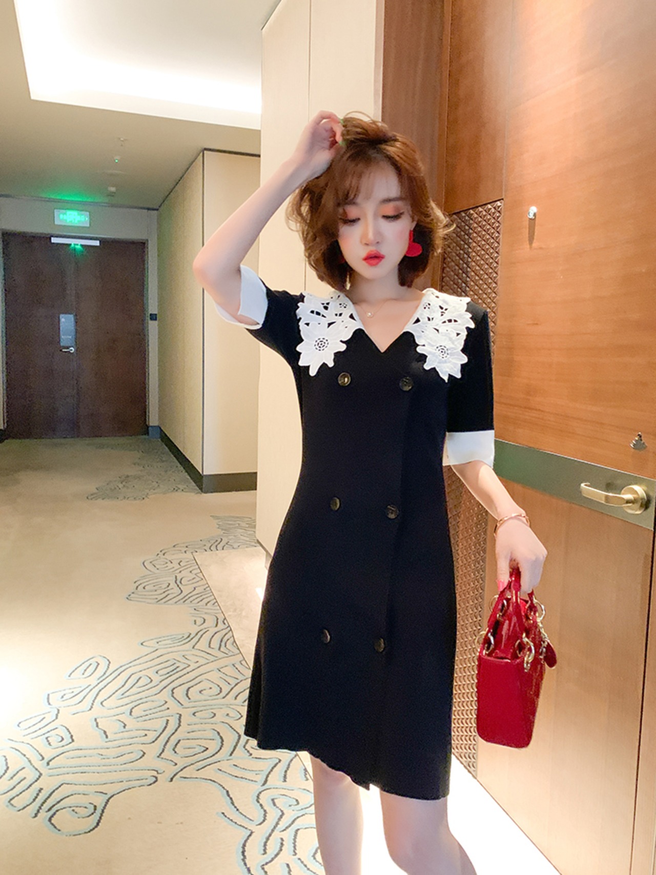 (サイズが選択可) レディース ワンピース Vネック 5分丈 ブラックカラー 黒 セクシー 春夏 夏春 春 夏 お出かけ おでかけ 通勤服 デート 女子会 上品 ショート丈 ショート 10代 20代 30代 40代 かわいい 可愛い 大人かわいい 大人可愛い 大人 大人女子 きれいめ おしゃれ お洒落 上品 清楚 こなれ感 レース襟 OL オフィスカジュアル オフィス 普段着 普段使い デイリー XS S M L XL 2XL 3XL シンプル 無地