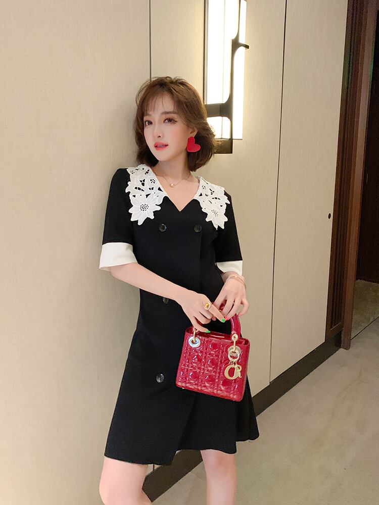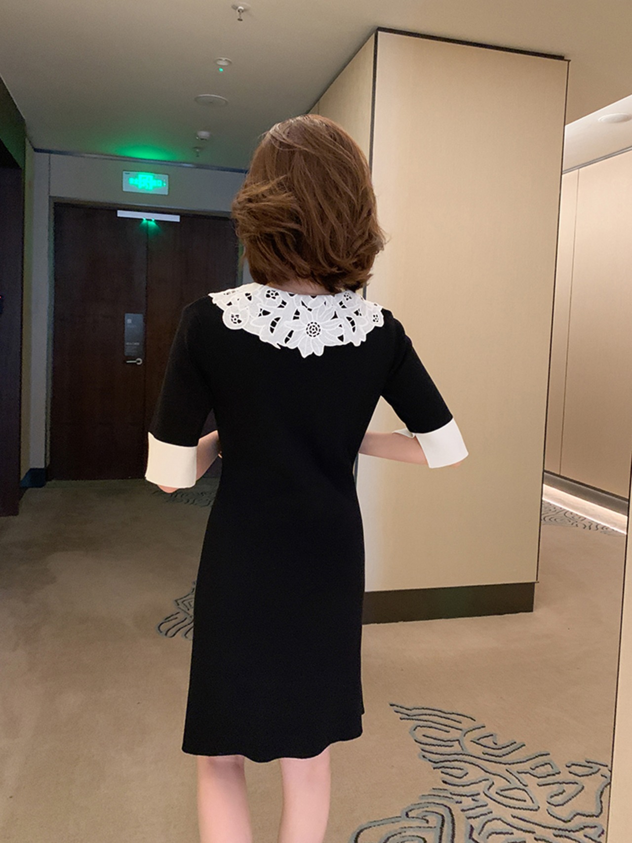 (サイズが選択可) レディース ワンピース Vネック 5分丈 ブラックカラー 黒 セクシー 春夏 夏春 春 夏 お出かけ おでかけ 通勤服 デート 女子会 上品 ショート丈 ショート 10代 20代 30代 40代 かわいい 可愛い 大人かわいい 大人可愛い 大人 大人女子 きれいめ おしゃれ お洒落 上品 清楚 こなれ感 レース襟 OL オフィスカジュアル オフィス 普段着 普段使い デイリー XS S M L XL 2XL 3XL シンプル 無地 | Chère