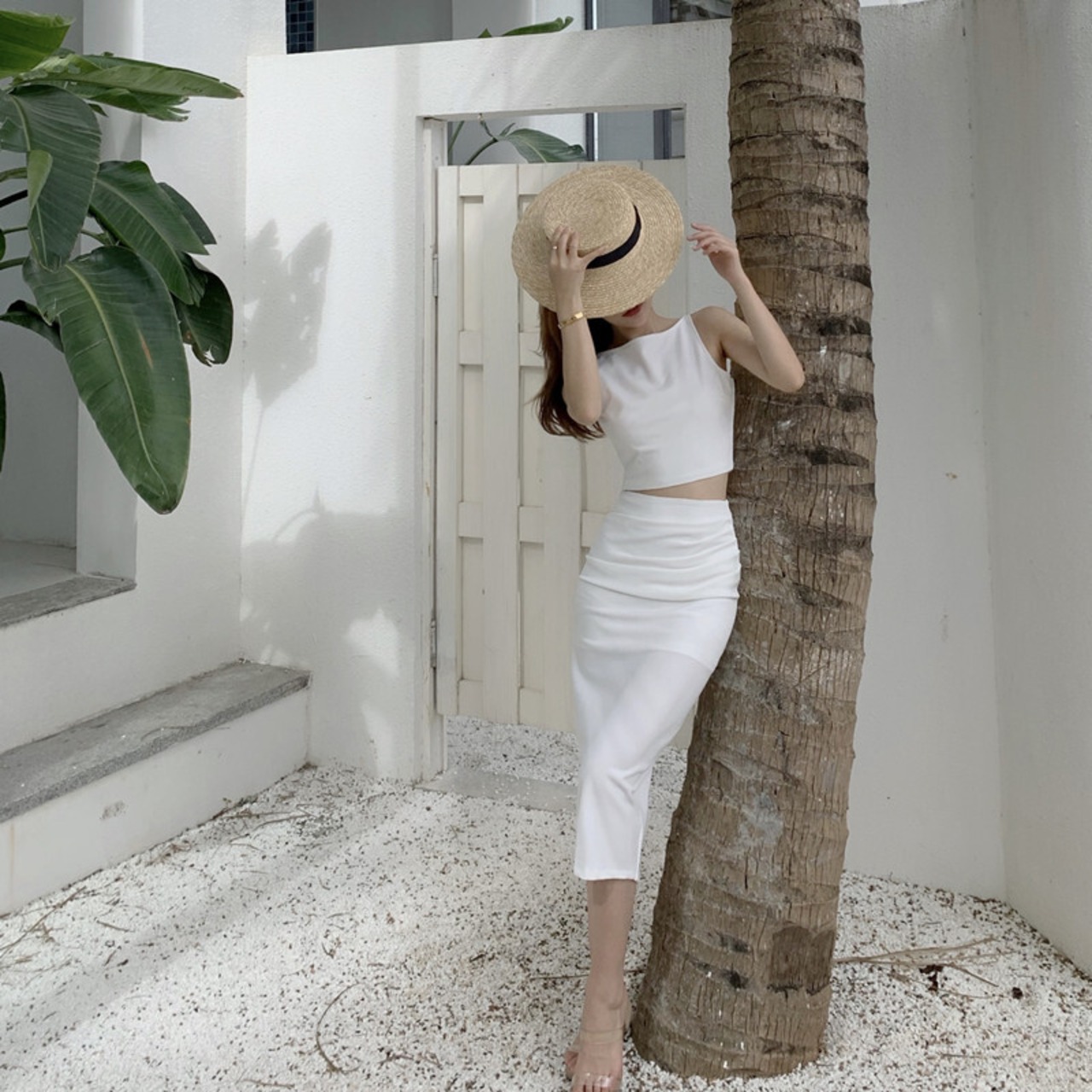 (色とサイズが選択可) セットアップ トップス タイトスカート ミモレ丈 袖なし ボートネック タイト 細身 Iライン バックスリット 上下セット きれいめ シンプル 大人 上品 おしゃれ お洒落 かっこいい 大人女子 こなれ感 個性的 クール セクシー エレガント モダン 主役級 存在感 フォーマル 無地 春 夏 秋 謝恩会 披露宴 20代 30代 40代 50代 ビジネス OL デート お出かけ パーティー イベント 高原 ホテル 体系カバー 美脚 脚長 トレンド インスタ映え 即納 S M L | Chère