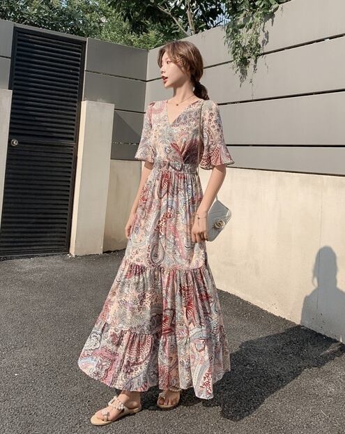(サイズが選択可) ワンピース フレアワンピース マキシ丈 5分袖 ホルンスリーブ カシュクール 襟なし セミフレア ポリエステル かわいい 大人可愛い きれいめ 大人 上品 おしゃれ お洒落 大人可愛い 大人女子 こなれ感 ラブリー キュート エレガント ボタニカル 春 夏 秋 謝恩会 10代 20代 30代 40代 50代 オフィス OL 通勤 デート お出かけ お泊まり 休日 イベント リゾート 旅行 海 高原 ガーデン 普段使い 楽ちん モテ プレゼント 流行 インスタ映え 即納 S M L | Chère