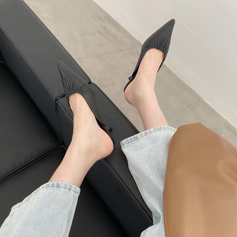 ギャザーのあるシックなデザインのミュールサンダル♥