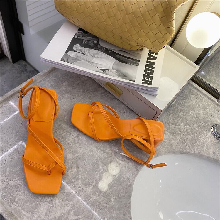 (色とサイズが選択可) サンダル ヒール 7cmヒール 太ヒール スクエアトゥ アンクルストラップ 美脚 脚長 トングサンダル 革 PU かわいい 大人可愛い カジュアル 大人 上品 おしゃれ お洒落 かっこいい 大人っぽい 女っぽ クール セクシー モダン 主役級 存在感 無地 春 夏 秋 10代 20代 30代 40代 50代 デイリー 普段使い ファッション コーデ スタイル 高見え 格上げ 流行 インスタ映え 即納 ホワイト オレンジ | Chère