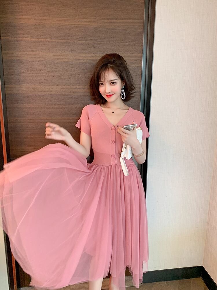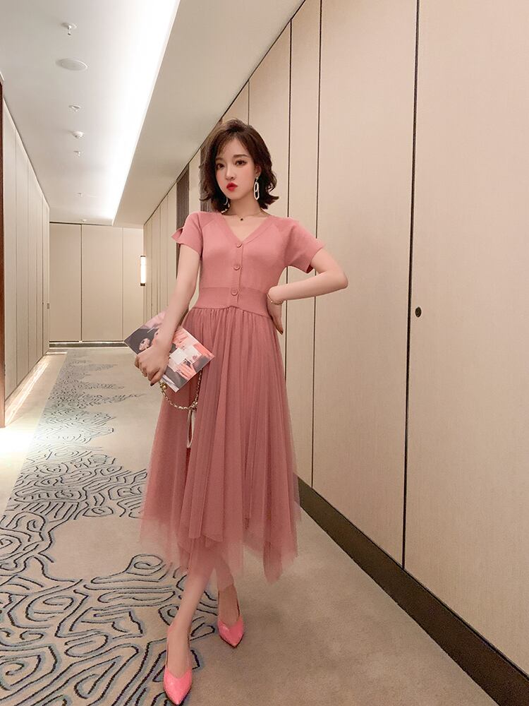 (色とサイズが選択可) レディース ワンピース ニット メッシュ ドレス ピンク ブルー 桃色 青 フェミニン 上品 清楚 Vネック シンプル 無地 春夏 夏春 春 夏 新作 デート お出かけ おでかけ 通勤服 女子会 かわいい 可愛い 大人かわいい 大人可愛い S M L XL 2XL 3XL シフォン おしゃれ お洒落 きれいめ 普段着 普段使い OL オフィス オフィスカジュアル オフィスレディ こなれ感 ロング丈 ロング | Chère