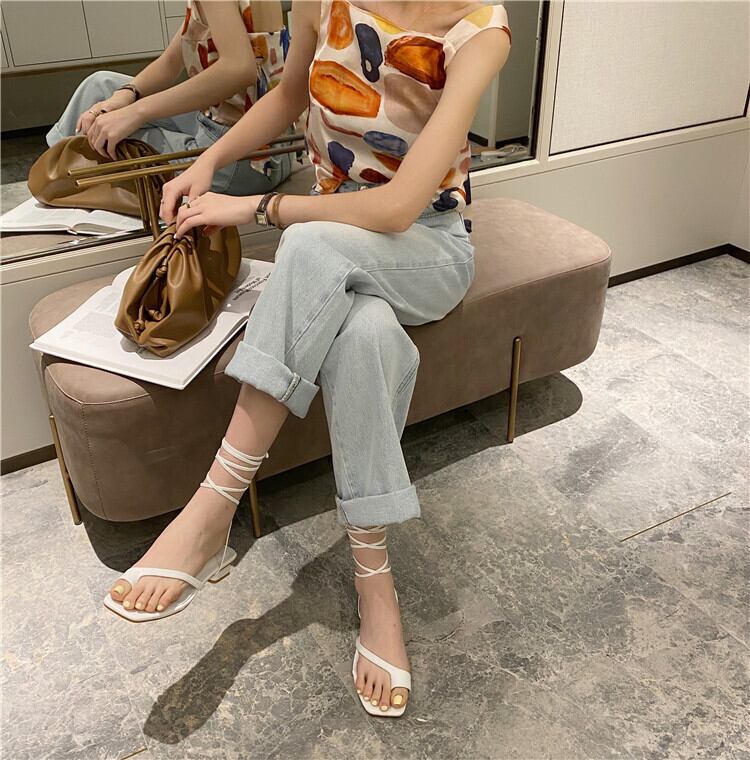 細ひもの編上げで、女性っぽいトングサンダル♥