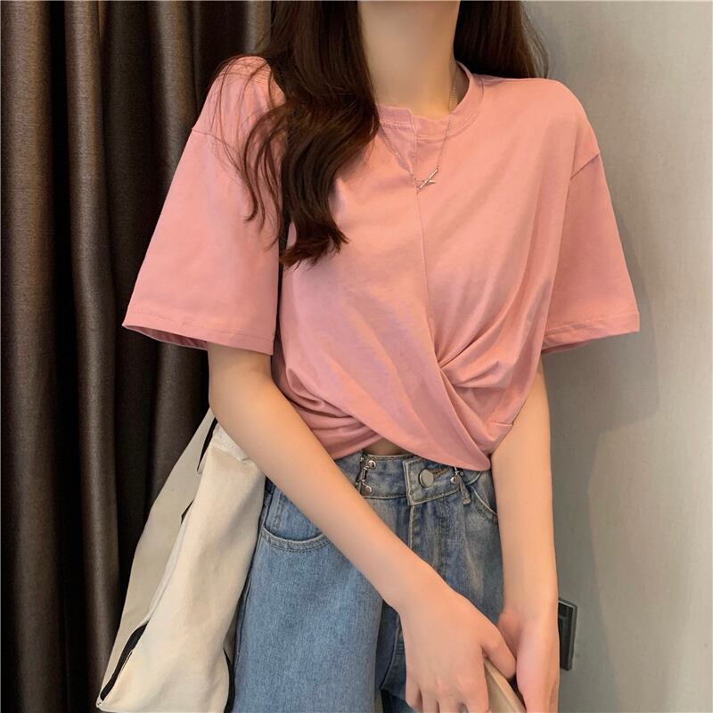 (5色選択可) レディース 半袖 Tシャツ 韓国 5color ブルー グレー ピンク ブラック ホワイト 青 灰色 桃色 黒 白 カジュアル シンプル かわいい 可愛い 大人かわいい 大人可愛い デート 通勤服 お出かけ おでかけ 女子会 10代 20代 30代 40代 ワンサイズ ラウンドネック シンプル 無地 レディース おしゃれ お洒落 きれいめ 普段着 普段使い デイリー OL オフィス オフィスカジュアル オフィスレディ オフィススタイル かっこいい トップス | Chère