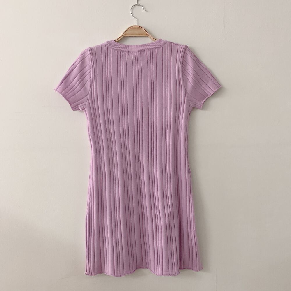 (5色選択可) レディース ワンピース ニット 半袖 Aライン ラウンドネック シンプル 無地 ショート丈 ショート エレガント 上品 清楚 5color アプリコット パープル グリーン ブルー ブラック 杏 紫 緑 青 黒 かわいい 可愛い 大人かわいい 大人可愛い 大人女子 大人 デート 通勤 お出かけ おでかけ 女子会 10代 20代 30代 40代 韓国 ラフ キュート ガーリー こなれ感 普段着 普段使い デイリー OL オフィス オフィスカジュアル オフィススタイル ワンサイズ | Chère