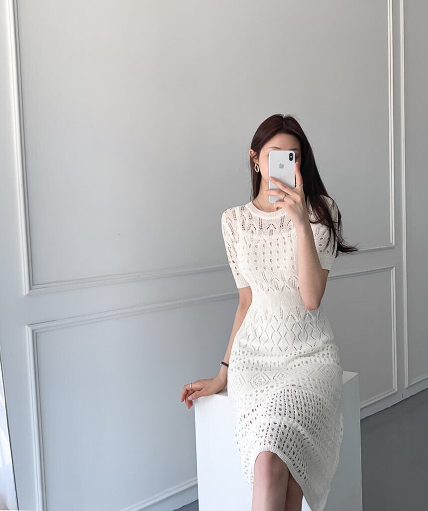(4色選択可) レディース ワンピース ニット ラウンドネック シック エレガント ロング丈 ロング 上品 清楚 4color ライトブルー ネイビー ホワイト ブラック 水色 紺 白 黒 おしゃれ お洒落 大人 大人女子 かわいい 可愛い 大人かわいい 大人可愛い ロング丈 ドレス 夏 韓国 デート 女子会 おでかけ お出かけ おでかけ 通勤服 10代 20代 30代 40代 ワンサイズ こなれ感 普段着 普段使い デイリー ラフ シンプル 無地 レディース OL オフィス オフィスカジュアル | Chère