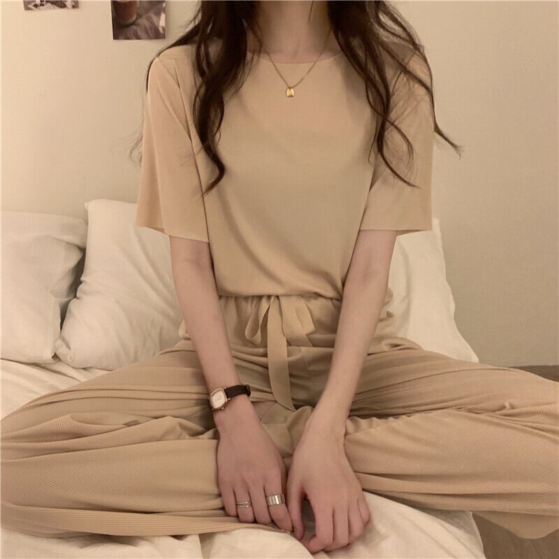(5色選択可) レディース ブラック グレー ベージュ ピンク ブルー ズボン 楽ちん 流行 部屋着 韓国 韓国系 シンプル カジュアル おしゃれ かわいい ラフ 女性用 大人可愛い キュート ゆったり お泊り 休日 楽ちん ワンサイズ 女子会 10代 20代 30代 夏 春 ラフ 上下セット きれいめ シンプル 大人 大人女子 こなれ感 個性的 主役級 存在感 無地 40代 50代 デート お出かけ イベント ホテル 体系カバー トレンド インスタ映え | Chère