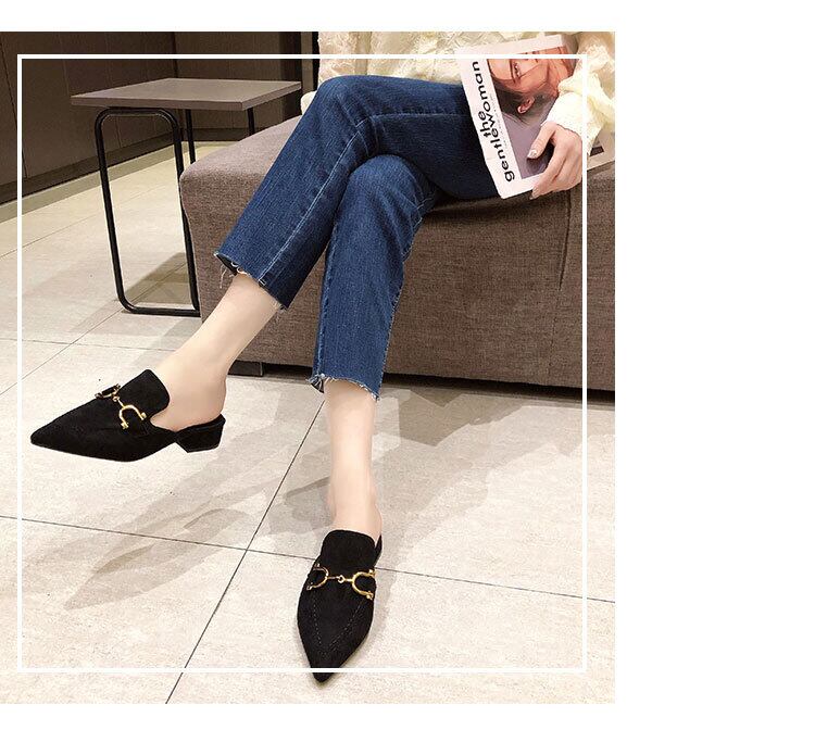 安定感のあるチャンキーヒールで歩きやすくおしゃれな、スエード調のポインテッドトゥミュール。シンプルなバックルデザインで大人可愛く、通勤はもちろん、パーティーや結婚式などのオケージョンにも◎
