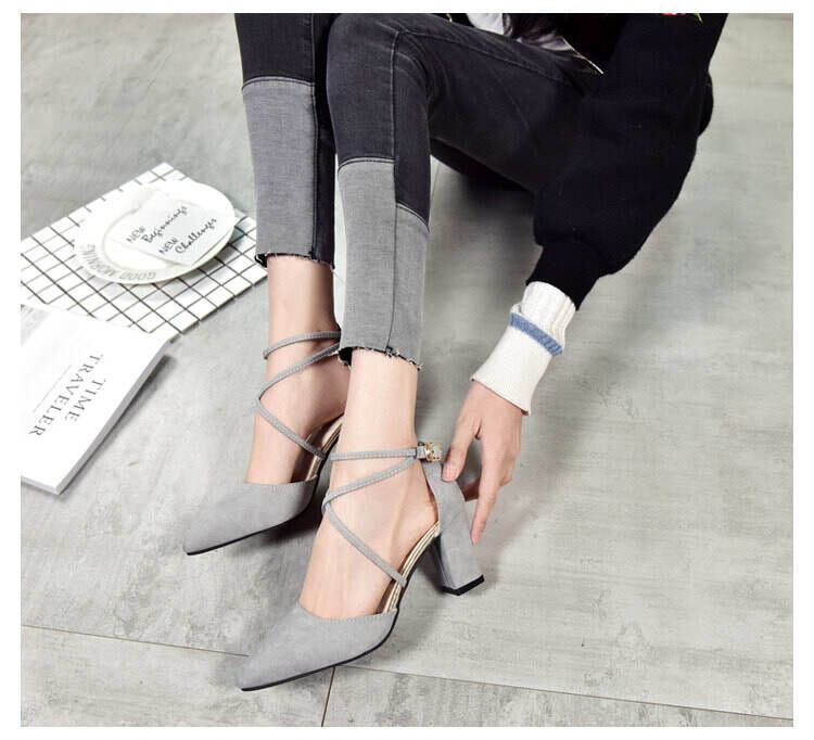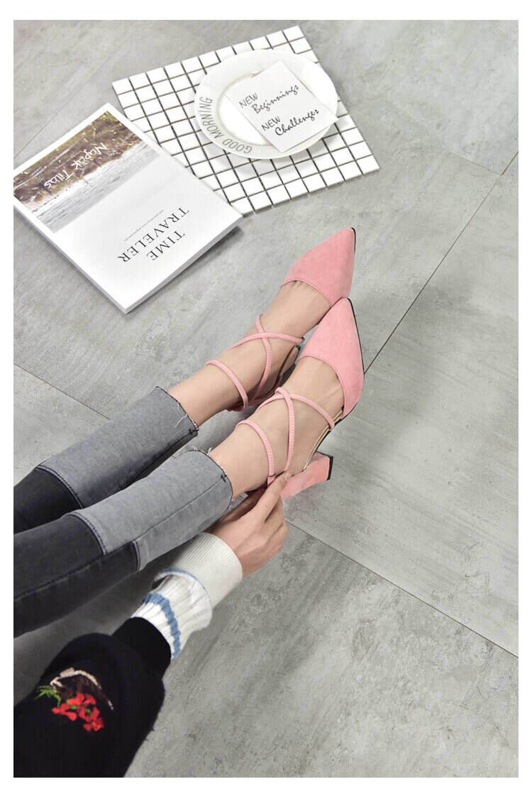 安定感のあるチャンキーヒールにクロスストラップがおしゃれで大人可愛い、スエード調のシンプルなポインテッドトゥパンプス。普段のお出かけはもちろん、パーティーや結婚式などのオケージョンにも◎