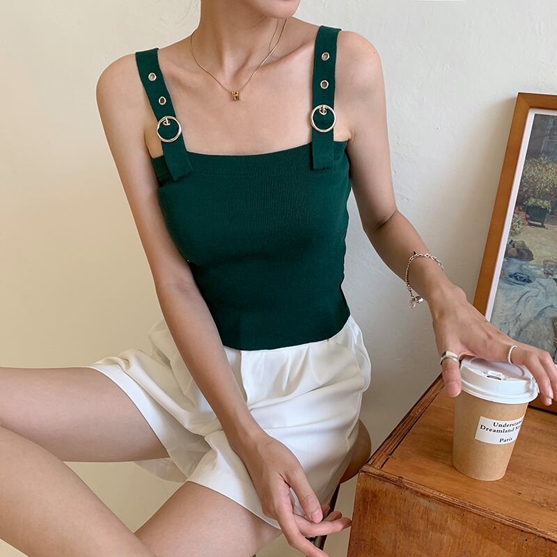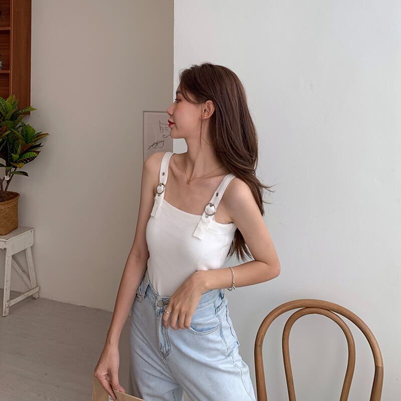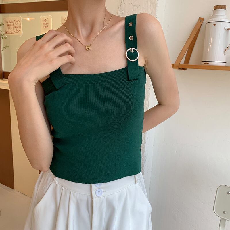 調節可能な肩紐デザインがポイントの、おしゃれで大人可愛いサマーニットキャミソール。