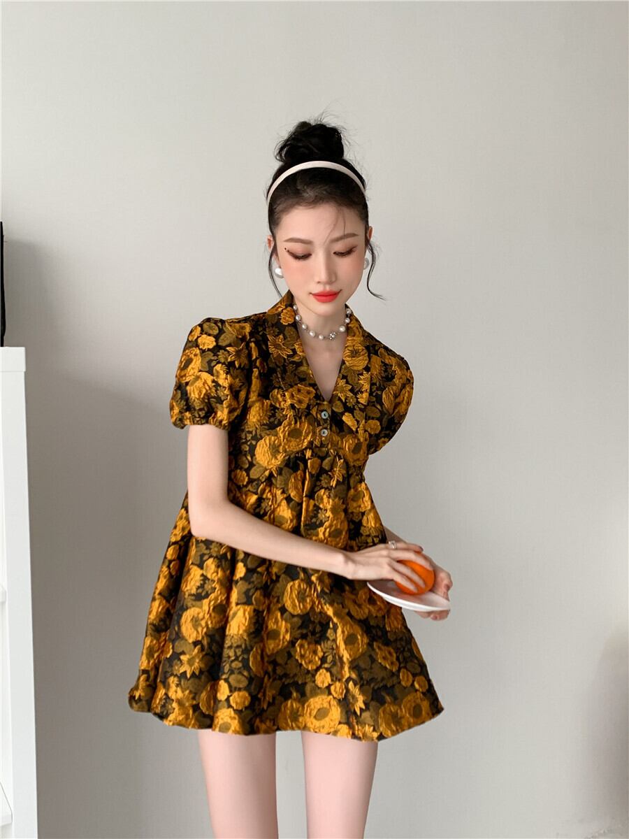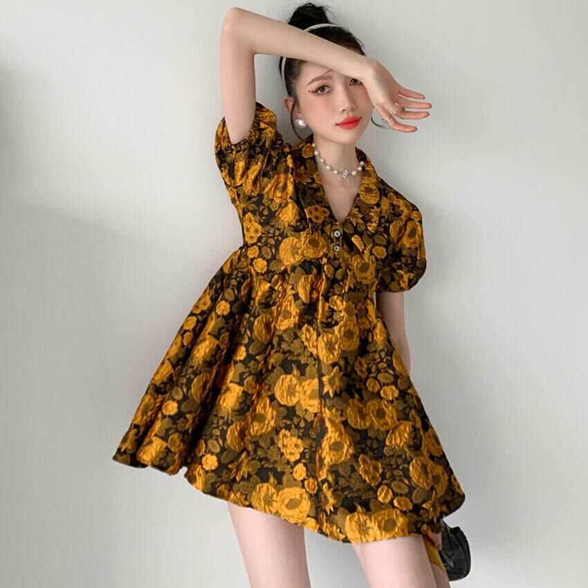 (サイズが選択可) レディース ワンピース シャツワンピース Vネック 半袖 パフスリーブ ミニ丈 ミニワンピース フレアワンピース Aラインワンピース 花柄ワンピース 花柄 フラワー ゆったり レディース 可愛い きれいめ シンプル カジュアル 大人 かわいい おしゃれ お洒落 上品 エレガント 大人可愛い 大人女子 無地 春 夏 10代 20代 30代 40代 デート お出かけ 女子会 デイリー 普段着 パーティー 結婚式 二次会 デイリー 普段使い 黄色 イエロー | Chère