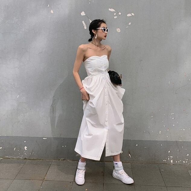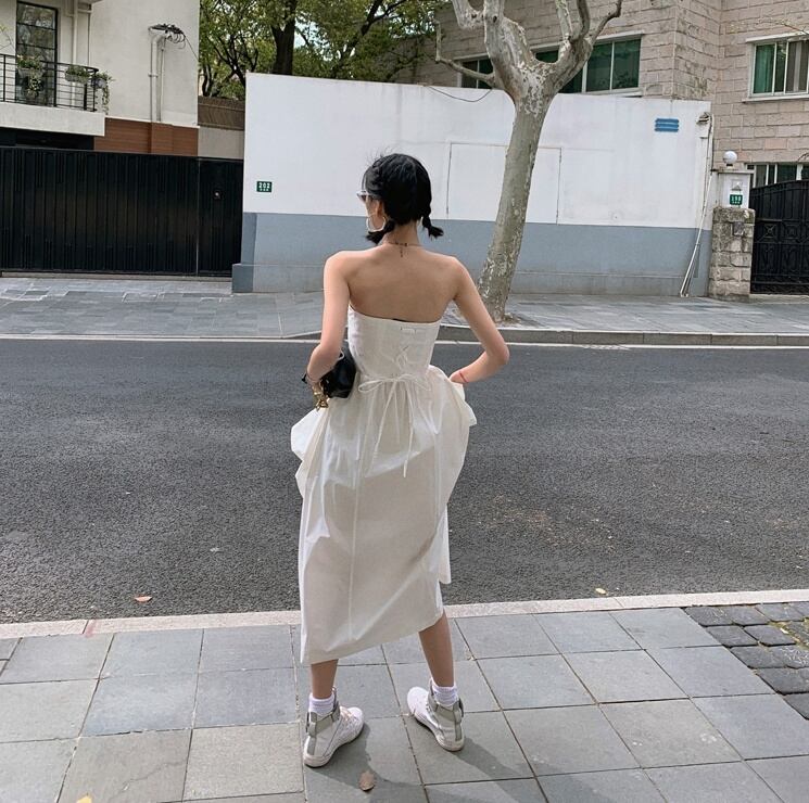 (サイズが選択可) アウター ワンピース ロング丈 ノースリーブ Aライン 綿 かわいい 大人可愛い 大人 上品 おしゃれ お洒落 かっこいい 大人女子 ラブリー キュート セクシー 無地 春 夏 秋 デート お出かけ リゾート 旅行 海 ホテル ガーデン 流行 インスタ映え S M L 白 | Chère