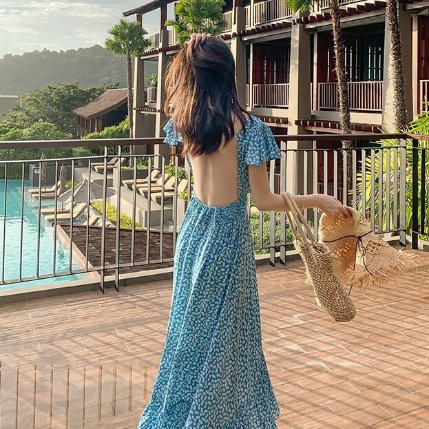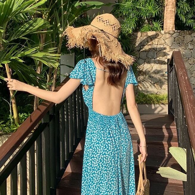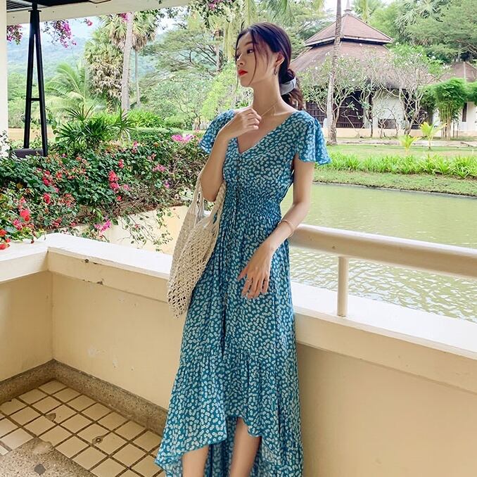 (サイズが選択可) ワンピース フレアワンピース ロング丈 半袖 Vネック フレア フリル ポリエステル かわいい 大人可愛い きれいめ 大人 上品 おしゃれ お洒落 エキゾチック 大人女子 こなれ感 ラブリー キュート ガーリー セクシー 水玉 夏 10代 20代 30代 お出かけ お泊まり リゾート 旅行 海 プール ガーデン スタイル モテ 流行 インスタ映え S M L ブルー | Chère