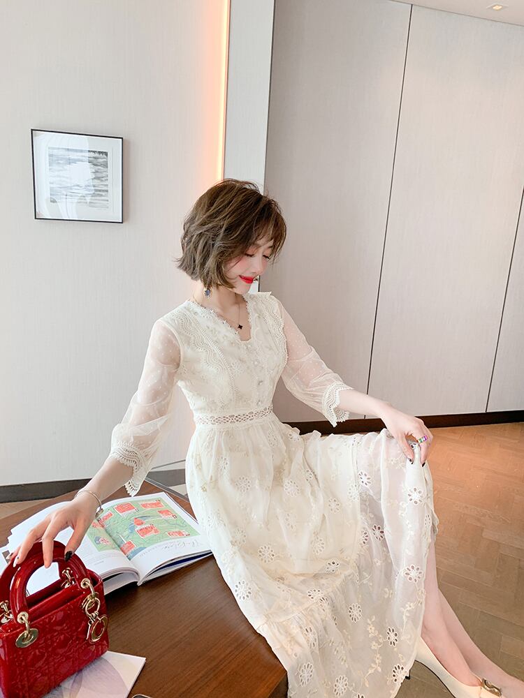 (色とサイズが選択可) レディース ワンピース ドレスワンピース レースワンピース ロングワンピース ロング丈 ミモレ丈 Vネック 七分袖 レース 花柄刺繍 水玉柄 シースルー 涼し気 フレアワンピース Aラインワンピース レディース 可愛い きれいめ シンプル カジュアル 大人 かわいい おしゃれ お洒落 上品 エレガント 大人可愛い 大人女子 春 夏 10代 20代 30代 40代 デート お出かけ 女子会 デイリー 普段着 パーティー 結婚式 二次会 フォーマル ピンク ベージュ