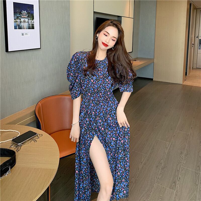 (色とサイズが選択可) レディース ワンピース 花柄ワンピース ロング丈 ミモレ丈 ラウンドネック 半袖 パフスリーブ 花柄 フラワー スリット ロングワンピース フレアワンピース Aラインワンピース ゆったり レディース 可愛い きれいめ シンプル カジュアル 大人 かわいい おしゃれ お洒落 上品 エレガント 大人可愛い 大人女子 キュート フェミニン 春 夏 10代 20代 30代 40代 デート お出かけ 女子会 デイリー 普段着 パーティー リゾート ブルー 青 緑 グリーン | Chère