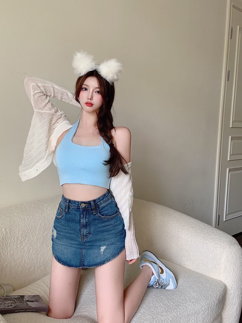 ハイウエストで脚長美脚効果があり、タイトなシルエットで美ラインを演出してくれる、大人可愛いミニ丈デニムスカート。
