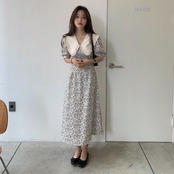 ワンピース フレアワンピース ロング丈 5分袖 パフスリーブ 襟付き フレア シフォン フリル バックリボン 綿 薄手 かわいい 大人可愛い きれいめ 大人 上品 おしゃれ お洒落 レトロ 大人女子 ラブリー キュート ガーリー 主役級 存在感 小花柄 春 夏 秋 10代 20代 30代 オフィス OL 通勤 学生 通学 デート お泊まり リゾート 旅行 海 高原 ホテル ガーデン レストラン 着回し 韓国系 オルチャン プレゼント ギフト トレンド 流行 インスタ映え パープル | Chère