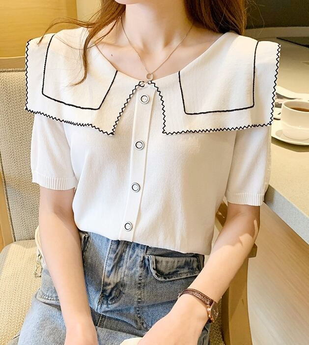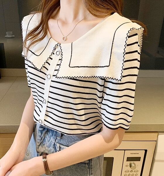 (2色選択可)トップス ニットソー 襟付き かわいい 大人可愛い きれいめ 大人 上品 おしゃれ お洒落 かっこいい 大人女子 こなれ感 ラブリー キュート エレガント 主役級 存在感 無地 ボーダー 春 夏 秋 10代 20代 30代 40代 オフィス OL 通勤 学生 通学 デート お出かけ お泊まり 休日 リゾート 旅行 海 高原 ホテル ガーデン レストラン 着回し 普段使い 韓国系 モテ トレンド 流行 インスタ映え 白 | Chère