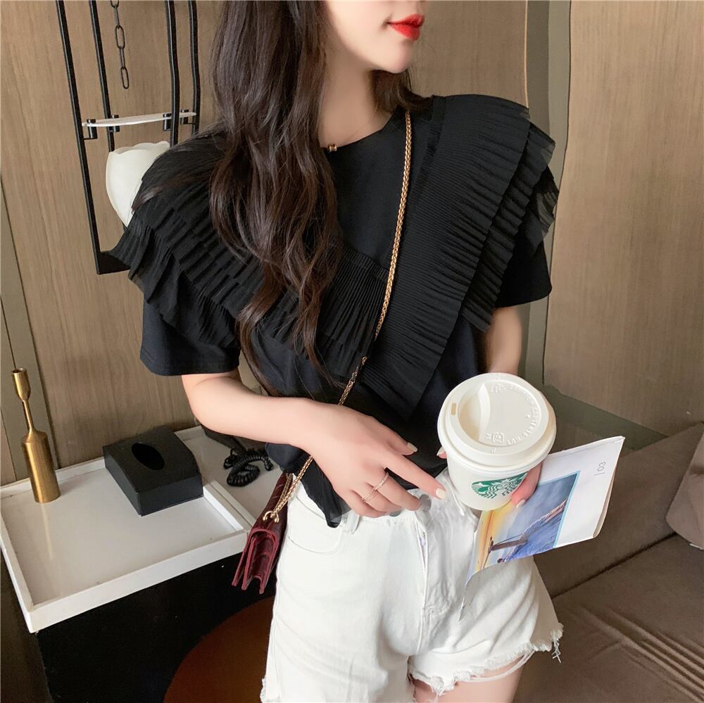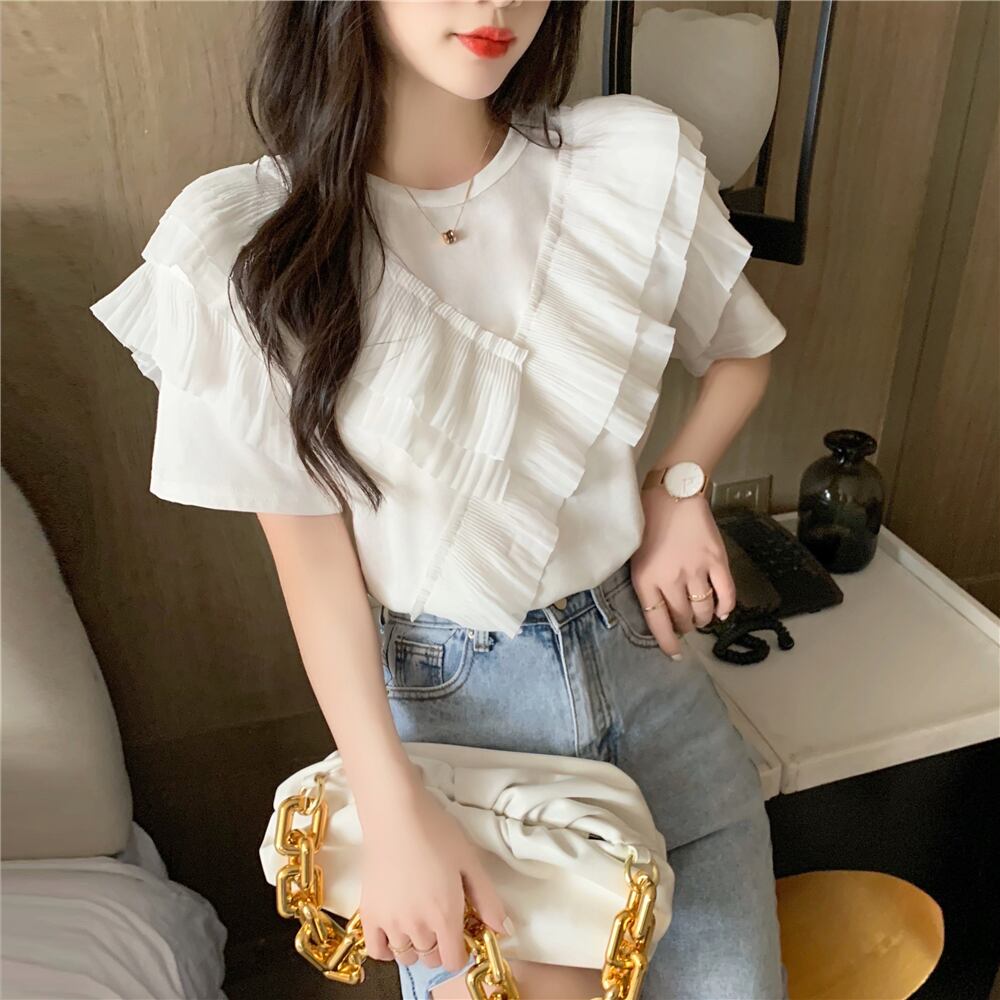 (色とサイズが選択可) トップス カットソー 半袖 ラウンドネック フリル 綿 かわいい 大人可愛い きれいめ 大人 上品 おしゃれ お洒落 大人女子 こなれ感 ラブリー キュート 主役級 存在感 無地 春 夏 秋 10代 20代 30代 40代 オフィス OL 通勤 学生 通学 デート お泊まり 休日 リゾート 高原 ホテル ガーデン レストラン 着回し 普段使い モテ 流行 インスタ映え S M L XL ホワイト ブラック | Chère