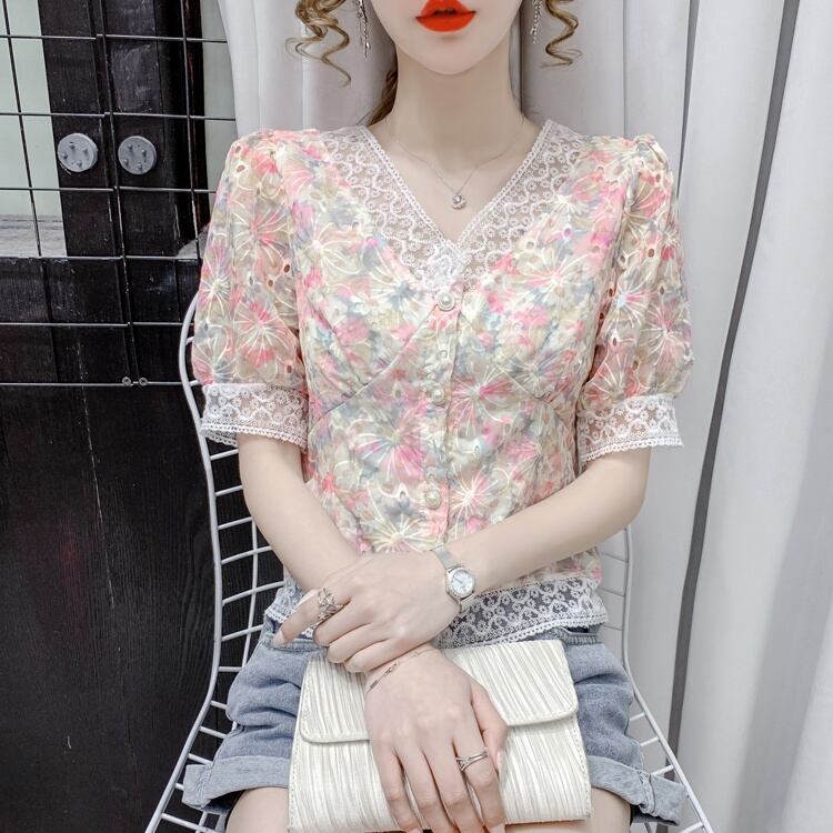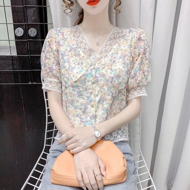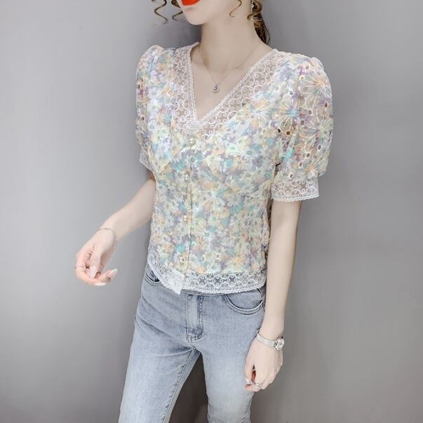 (色とサイズが選択可) トップス ブラウス 5分袖 Vネック レース 前開き ポリエステル かわいい 大人可愛い きれいめ 大人 上品 おしゃれ お洒落 ラブリー キュート ガーリー 主役級 存在感 小花柄 春 夏 秋 10代 20代 30代 40代 OL 通勤 学生 通学 デート お出かけ 休日 パーティー イベント リゾート 旅行 高原 ホテル ガーデン レストラン 着回し コーデ モテ プレゼント ギフト トレンド 流行 インスタ映え S M L XL イエロー ピンク | Chère