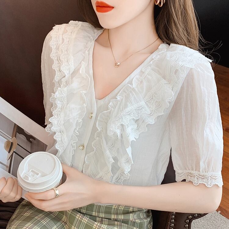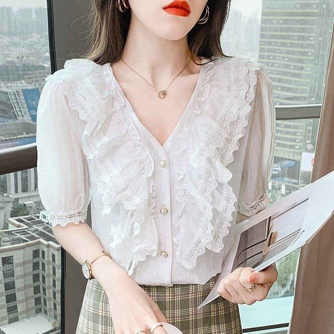 (色とサイズが選択可) トップス ブラウス 半袖 パフスリーブ Vネック フリル ポリエステル かわいい 大人可愛い きれいめ 大人 上品 おしゃれ お洒落 大人女子 こなれ感 ラブリー キュート 主役級 存在感 フォーマル 無地 春 夏 秋 謝恩会 10代 20代 30代 40代 オフィス ビジネス OL お出かけ パーティー イベント 高原 ホテル ガーデン レストラン 着回し オルチャン モテ プレゼント ギフト トレンド 流行 インスタ映え S M L ホワイト ブルー ピンク | Chère