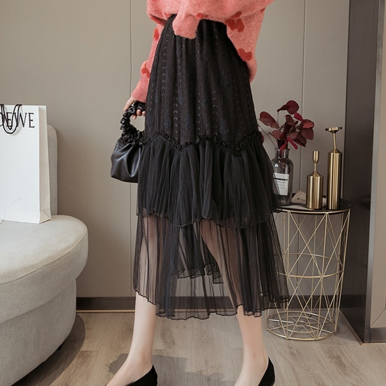 小花柄のレースとシフォンのスカート♥