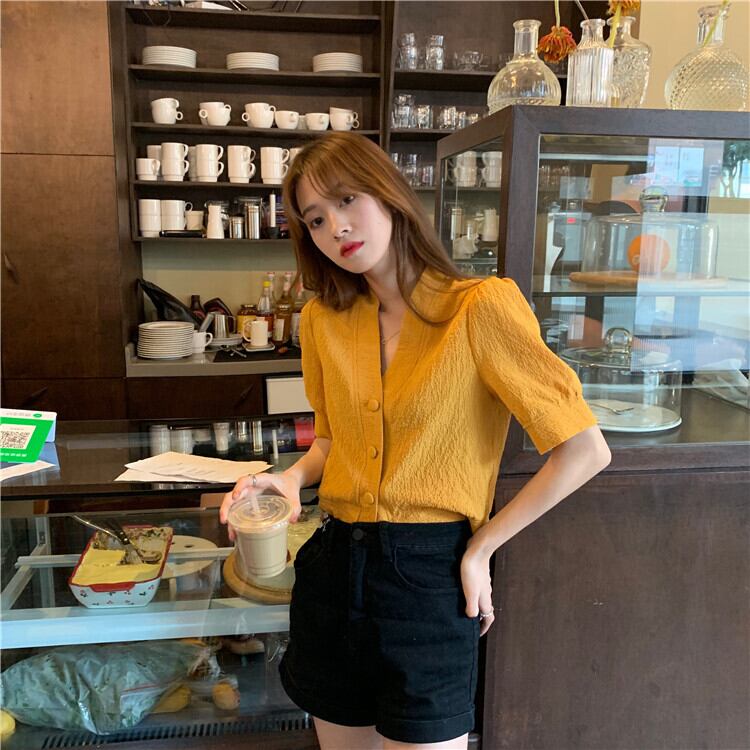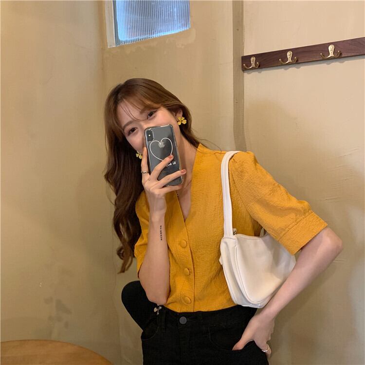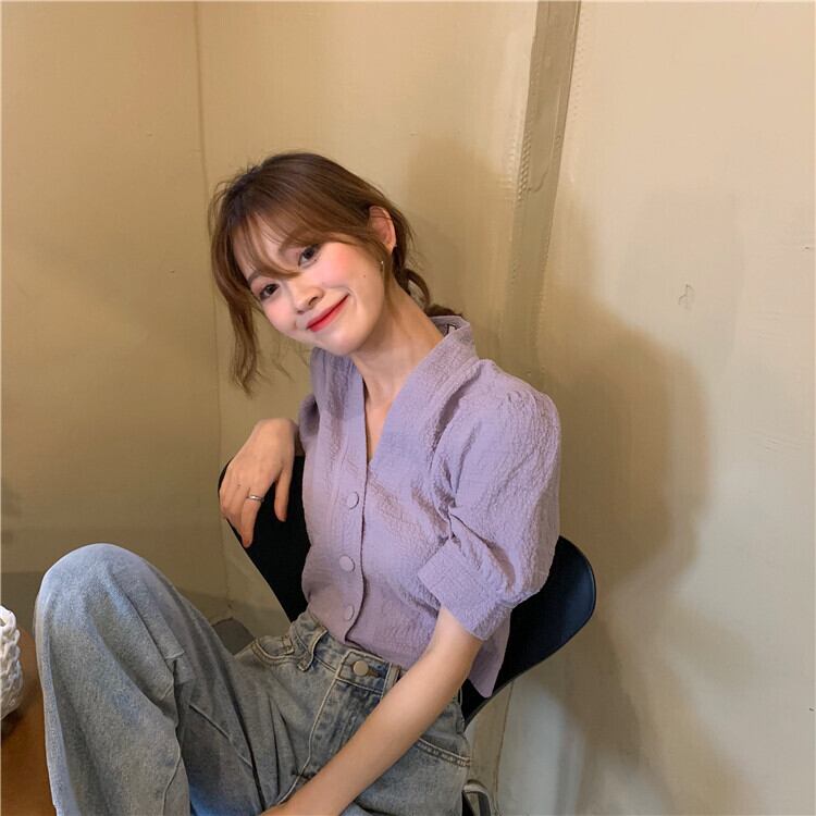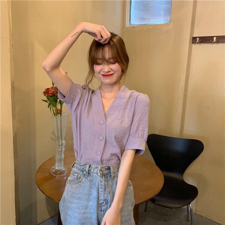 (3色選択可) レディース トップス シャツ パープル 紫 グリーン 緑 オレンジ 橙色 かわいい 可愛い シンプル 無地 レトロ Vネック 半袖 きれい 綺麗 きれい目 学生 おしゃれ お洒落 通学 通勤服 OL デート 女子会 お出かけ おでかけ 大人 大人女子 カジュアル 大人カジュアル 大人かわいい 大人可愛い レトロ 普段着 普段使い デイリー おしゃれ お洒落 トレンド 流行 インスタ映え モテ 着回し ワンサイズ 10代 20代 30代 40代 ママ オフィススタイル オフィスカジュアル | Chère