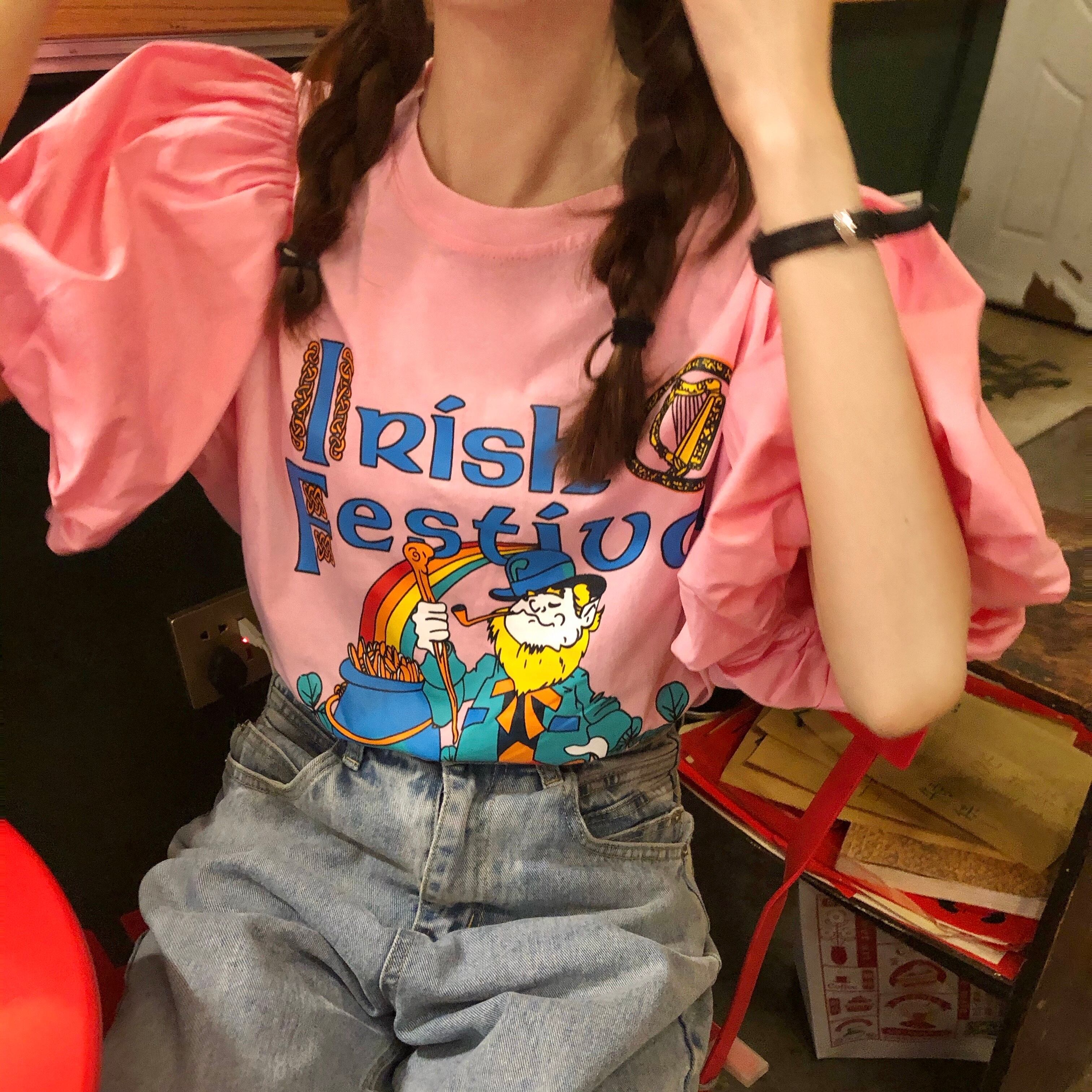(2色選択可) レディース 半袖 Tシャツ イラスト プリント パフスリーブ ホワイト 白 ピンク 桃色 かわいい 可愛い キュート ガーリー 学生 通学 普段着 普段使い デイリー お洒落 おしゃれ カジュアル 大人カジュアル 大人 大人女子 大人かわいい 大人可愛い おでかけ お出かけ 女子会 通勤服 オフィス オフィスカジュアル オフィススタイル トレンド 流行 インスタ映え トップス きれい 綺麗 きれい目 夏 夏休み 10代 20代 30代 40代 ママ モテ 着回し ワンサイズ 体型カバー | Chère