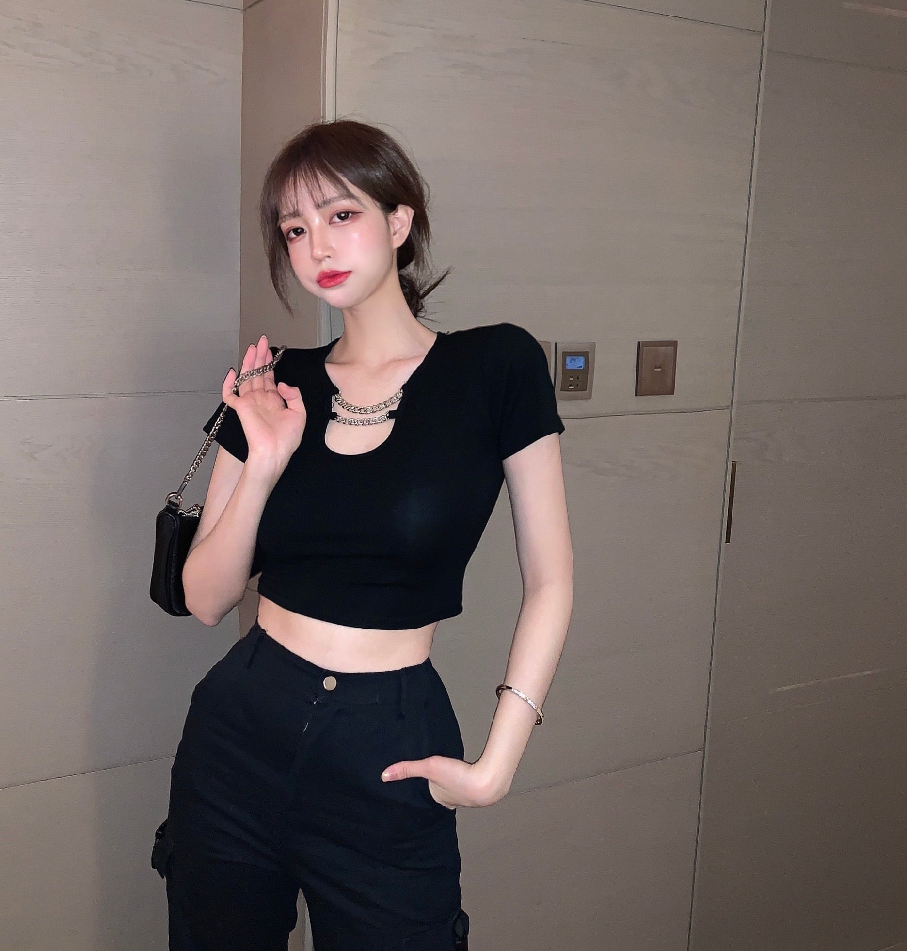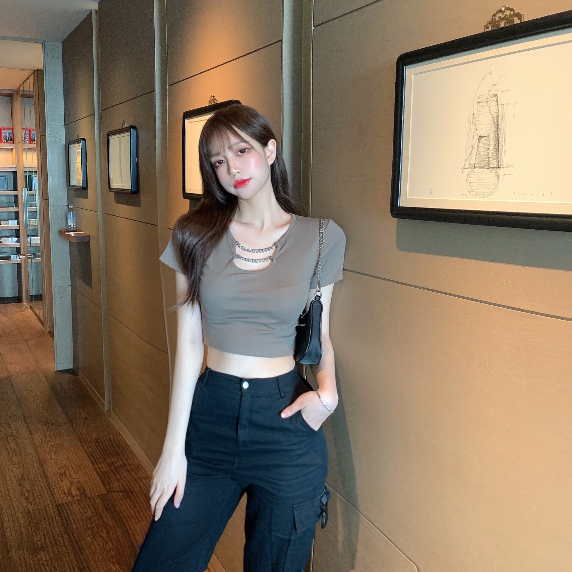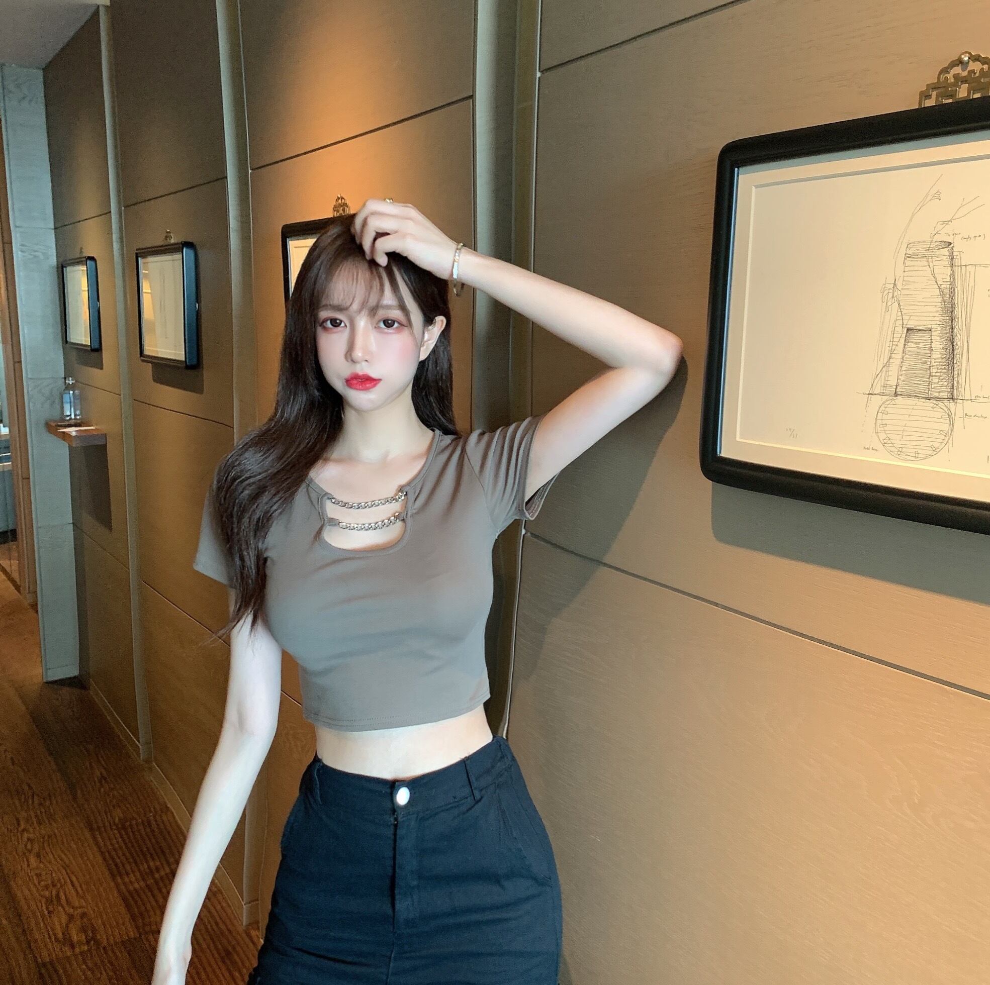 大人っぽい、ショート丈の半袖Tシャツです♪