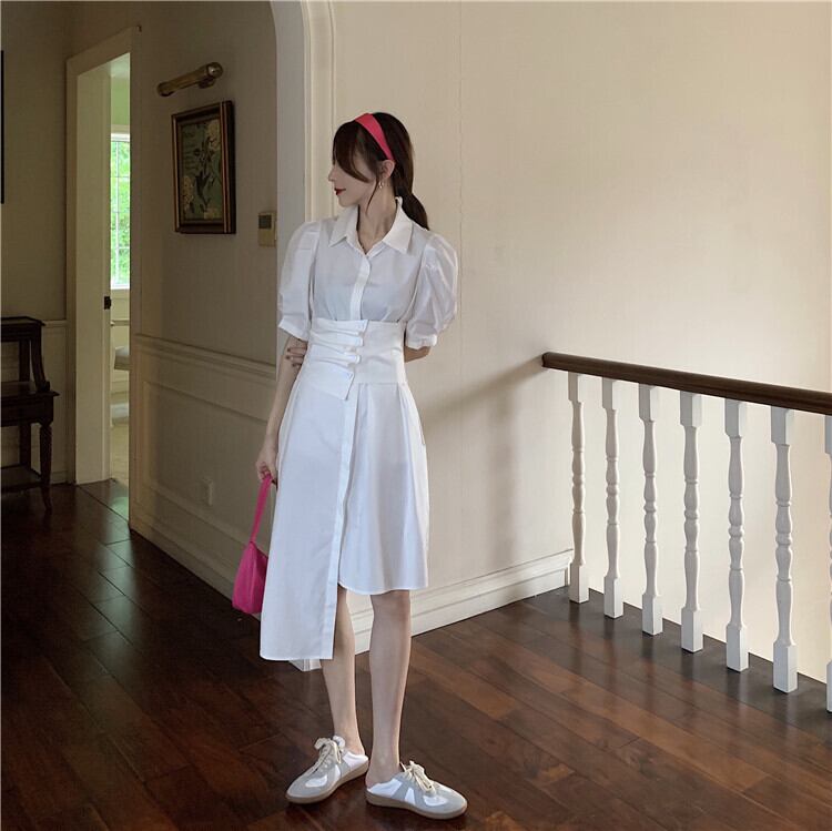 (3色選択可) ワンピース シャツワンピース 膝丈 5分袖 襟付き ストレート ベルト 綿 かわいい 大人可愛い きれいめ シンプル 上品 おしゃれ お洒落 大人女子 こなれ感 ラブリー モダン 主役級 存在感 無地 春 夏 秋 10代 20代 30代 40代 オフィス OL 通勤 学生 通学 リゾート 旅行 海 プール 高原 ホテル ガーデン レストラン 着回し 普段使い 韓国系 ファッション 楽ちん トレンド 流行 インスタ映え ホワイト ブラック ライトブルー | Chère