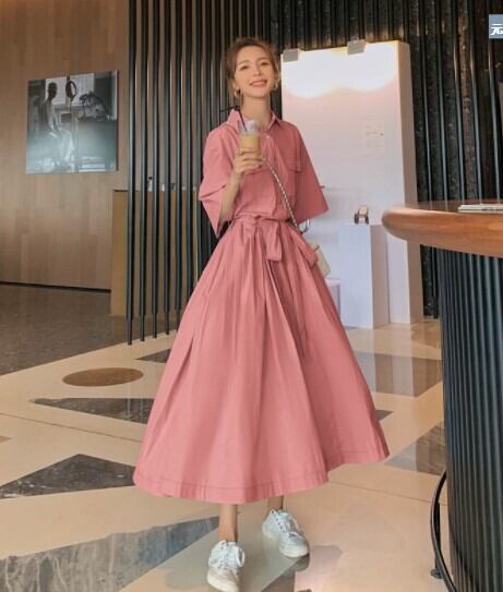 (色とサイズが選択可) ワンピース フレアワンピース ロング丈 7分袖 襟付き フレア ウエストリボン 薄手 かわいい 大人可愛い シンプル 大人 上品 おしゃれ お洒落 大人女子 こなれ感 ラフ スポーティー ラブリー キュート 主役級 存在感 無地 春 夏 秋 10代 20代 30代 40代 OL 通勤 学生 通学 デート お出かけ お泊まり 休日 リゾート 旅行 海 プール 高原 ガーデン レストラン 着回し 普段使い 体系カバー 流行 インスタ映え S M L XL ピンク | Chère