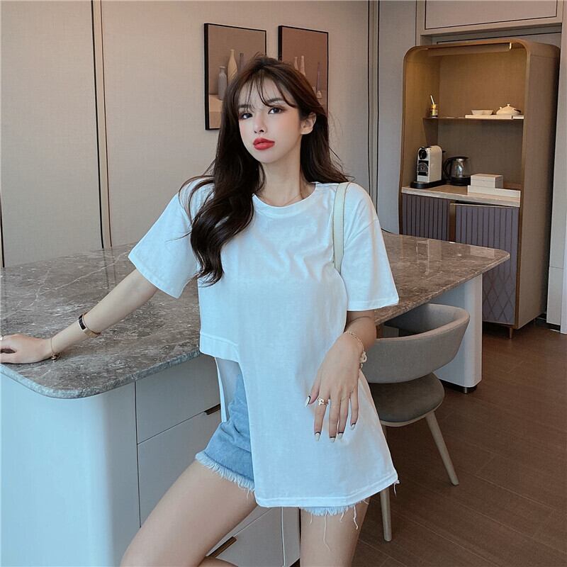 (2色選択可) レディース トップス カットソー Tシャツ ロング丈 ショート丈 アシンメトリー 不規則 ラウンドネック 半袖 ロングTシャツ ロンT サイドオープン チラ見せ ゆったり 無地 涼し気 レディース 可愛い きれいめ シンプル カジュアル 大人 かわいい おしゃれ お洒落 上品 キュート ラフ 大人可愛い 大人女子 春 夏 10代 20代 30代 デート お出かけ 女子会 デイリー 普段着 ホワイト 白 ブルー 青 | Chère