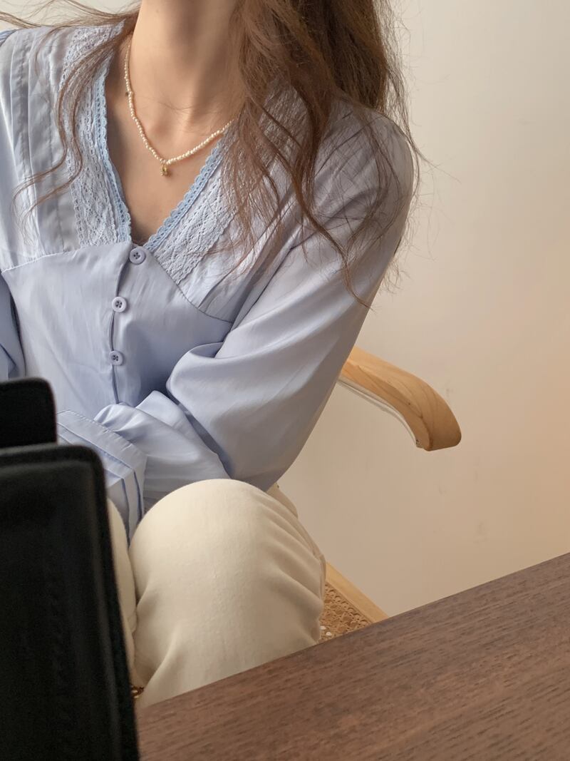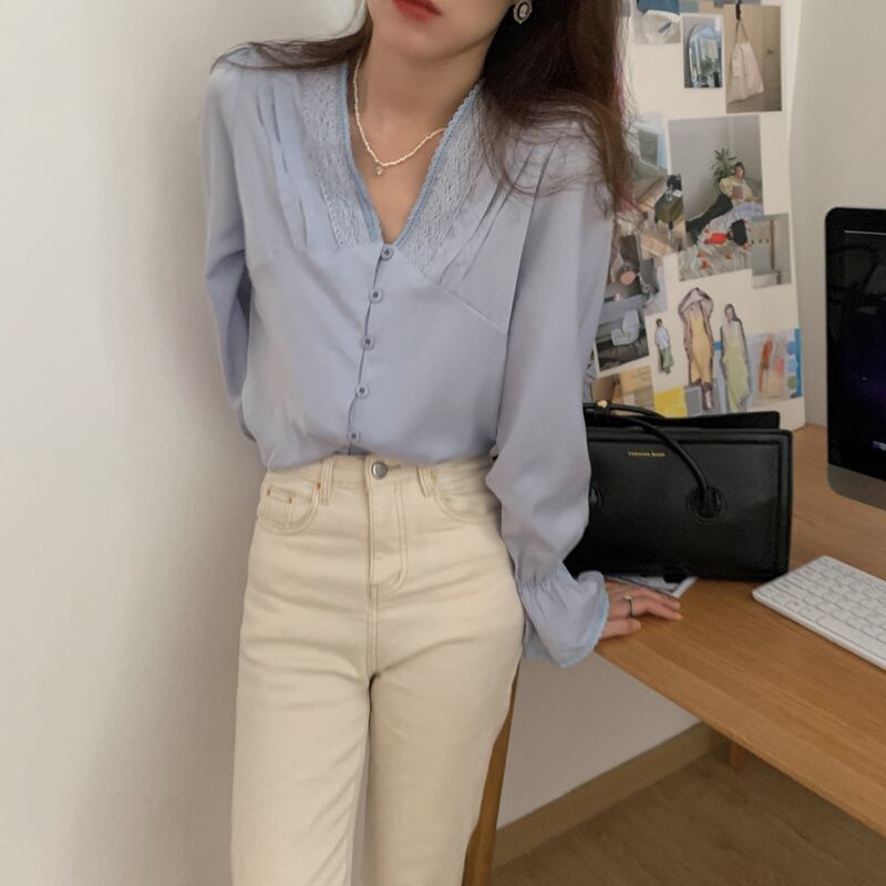 (2色選択可) トップス ブラウス 長袖 Vネック 刺繍 前開き 綿 かわいい 大人可愛い きれいめ 大人 上品 おしゃれ お洒落 大人女子 こなれ感 ラブリー キュート ガーリー エレガント モダン 主役級 存在感 無地 春 夏 秋 10代 20代 30代 OL 通勤 学生 通学 デート お出かけ お泊まり 休日 高原 ホテル ガーデン レストラン 普段使い モテ 体系カバー 激安 安い 送料無料 ホワイト ライトブルー | Chère