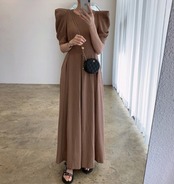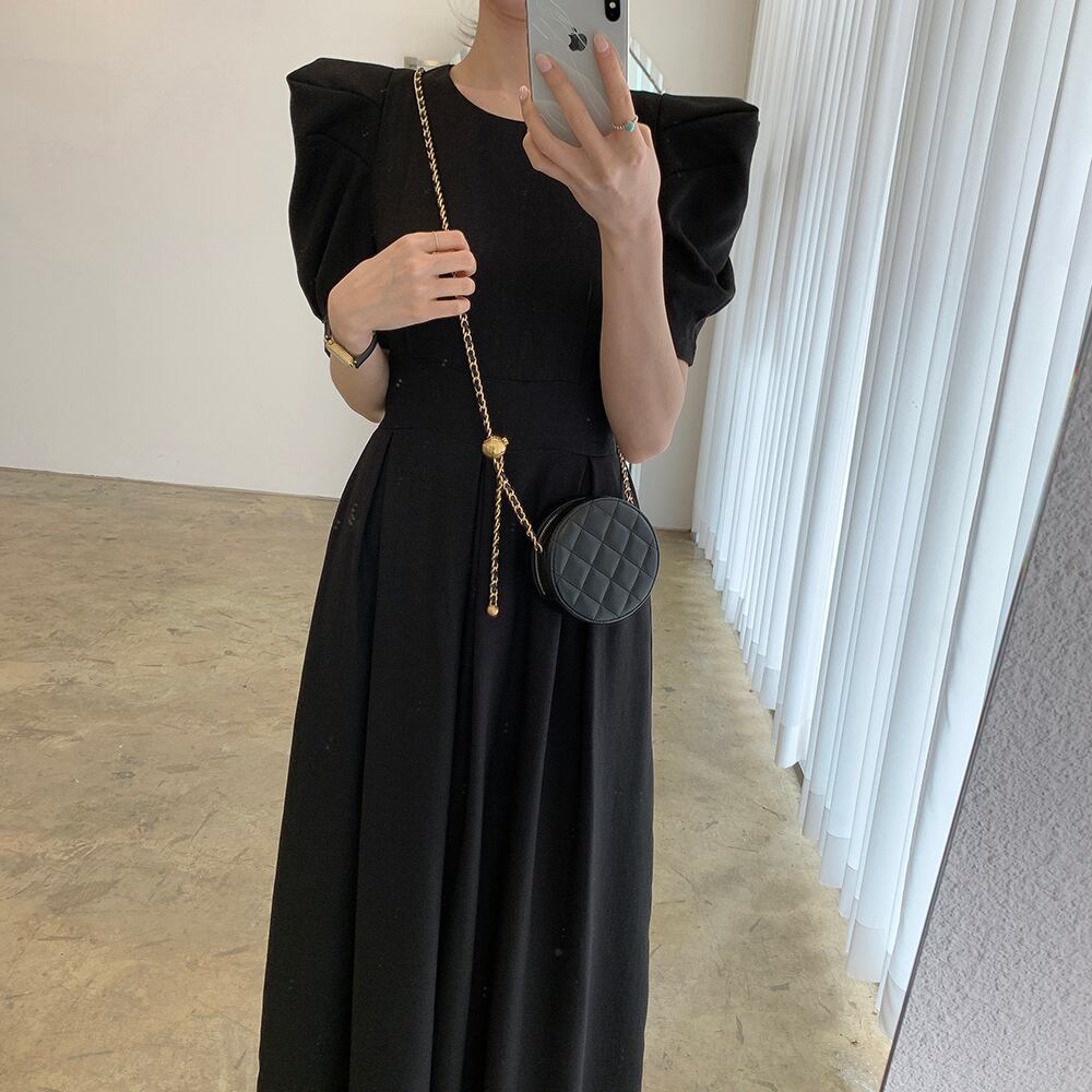 (2色選択可) ワンピース ワンピドレス マキシ丈 萌袖 ラウンドネック セミフレア ファスナー ポリエステル かわいい 大人可愛い きれいめ 大人 上品 おしゃれ お洒落 ラブリー キュート クール モード系 エレガント モダン 主役級 存在感 無地 春 夏 秋 20代 30代 40代 OL 通勤 デート お出かけ 休日 パーティー イベント 高原 ホテル ガーデン レストラン 体系カバー トレンド 流行 インスタ映え ブラック ブラウン | Chère