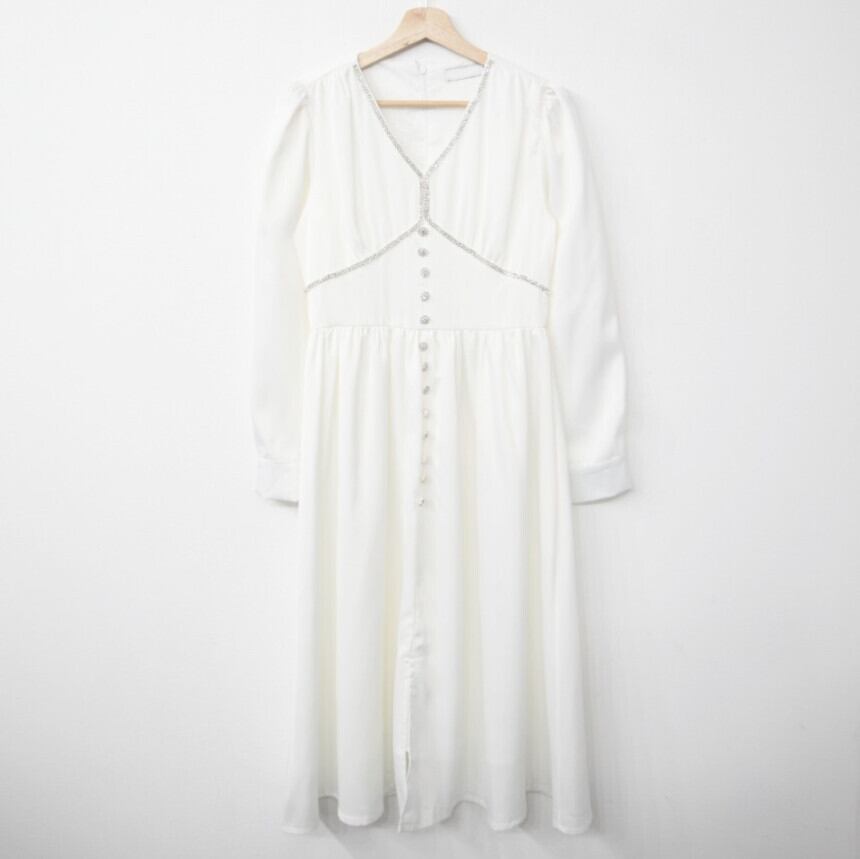 (サイズが選択可) ワンピース ワンピドレス マキシ丈 長袖 パフスリーブ Vネック セミフレア 切り替えデザイン ポリエステル 薄手 大人可愛い きれいめ 大人 上品 おしゃれ お洒落 大人女子 こなれ感 ラブリー 個性的 モード系 主役級 存在感 無地 春 夏 秋 20代 30代 40代 50代 OL 通勤 デート お出かけ 休日 パーティー イベント 高原 ホテル ガーデン レストラン コーデ スタイル モテ プレゼント ギフト トレンド 流行 インスタ映え S M L ホワイト | Chère
