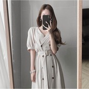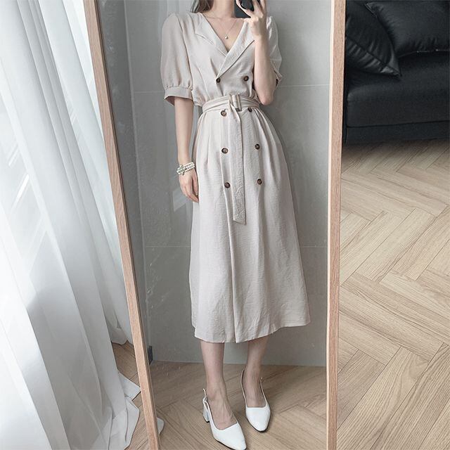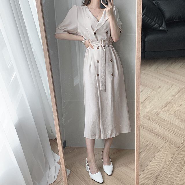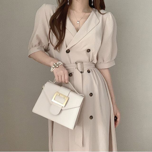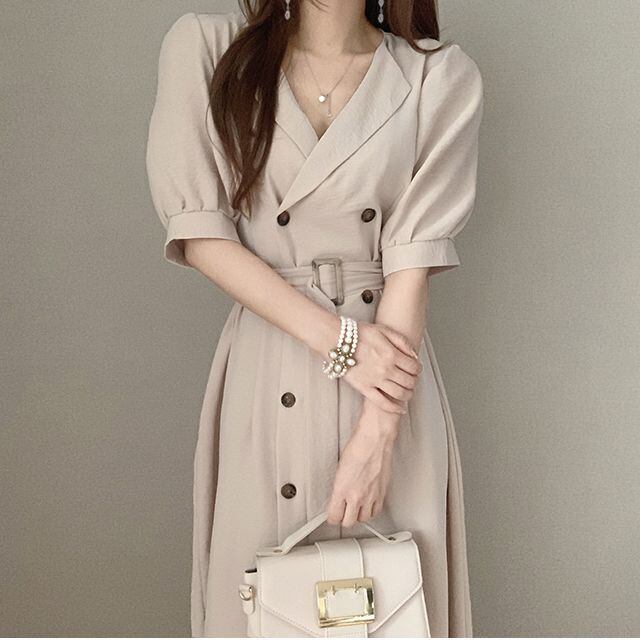 (3色選択可) ワンピース シャツワンピース ミモレ丈 5分袖 パフスリーブ Vネック 襟付き セミフレア ベルト ポリエステル 大人可愛い きれいめ シンプル 大人 上品 おしゃれ お洒落 かっこいい 大人女子 こなれ感 クール モード系 エレガント モダン 主役級 存在感 無地 春 夏 秋 卒業式 20代 30代 40代 50代 ビジネス OL 通勤 デート お出かけ 休日 高原 ホテル ガーデン レストラン 着回し コーデ トレンド 流行 インスタ映え ホワイト ブラック カーキ | Chère