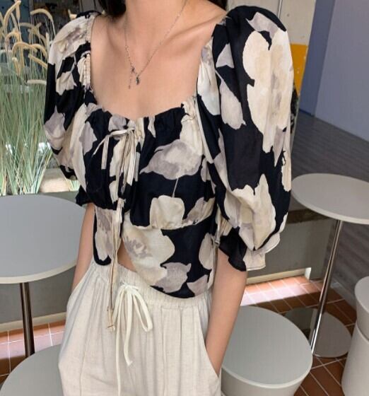 (2色選択可) トップス ブラウス パフスリーブ スクエアネック ポリエステル かわいい 大人可愛い きれいめ 大人 上品 おしゃれ お洒落 大人女子 こなれ感 ラブリー キュート 個性的 エレガント 主役級 存在感 花柄 春 夏 秋 10代 20代 30代 40代 OL 通勤 学生 通学 デート お出かけ お泊まり 休日 リゾート 旅行 海 プール 高原 ガーデン 着回し オルチャン コーデ モテ 体系カバー 流行 インスタ映え ブラック ピンク | Chère