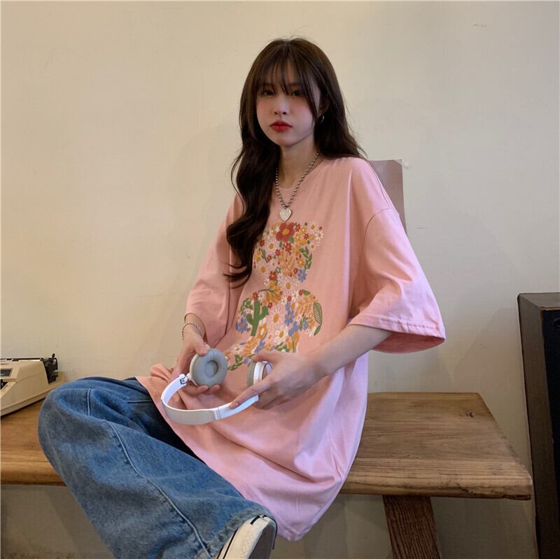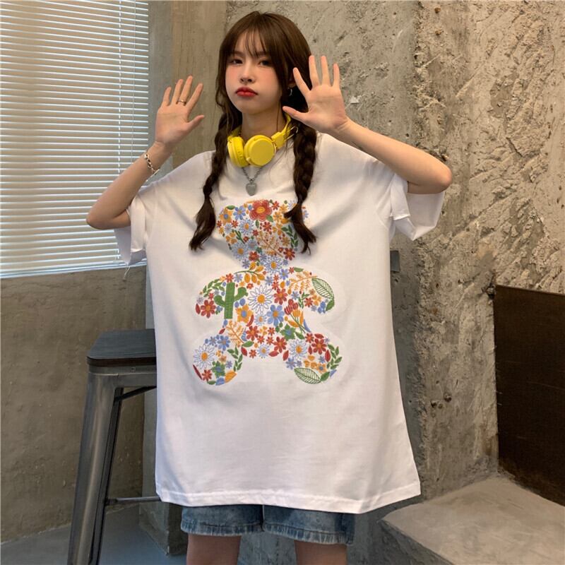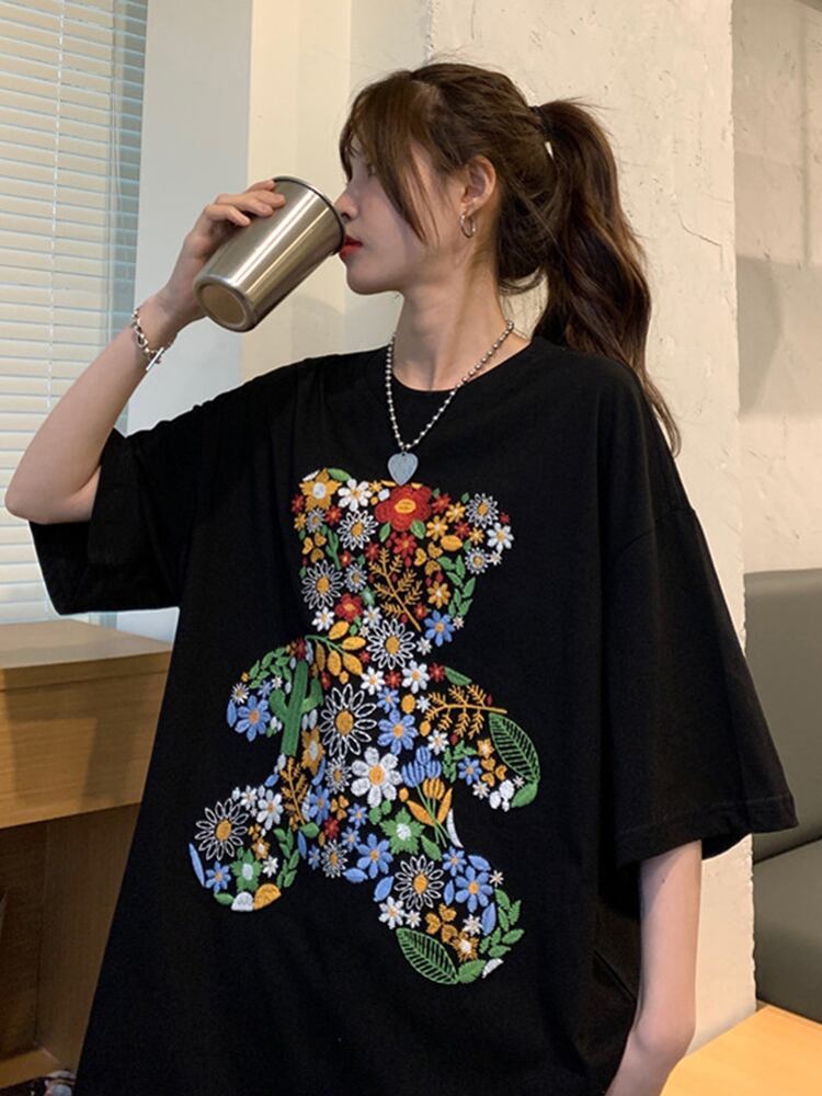 (色とサイズが選択可) 半袖 Tシャツ レディース 夏 シックトップス デザイン 3色展開 カジュアル シック シンプル クマ オーバーサイズ ハイウエスト BBQ 部屋着 ルームウエア 春 秋 ピンク ホワイト ブラック 花柄 細身 襟無し 妊婦 マタニティーウエアス ポーツウエア ロック パーティー デート 外出 お泊り お出かけ ショッピング 旅行 | Chère