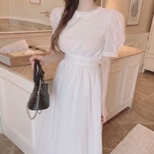 柔らかい素材とパフスリーブで女性らしいワンピース。