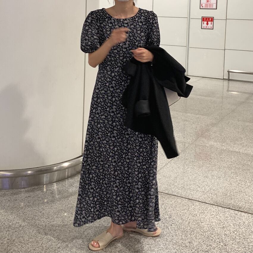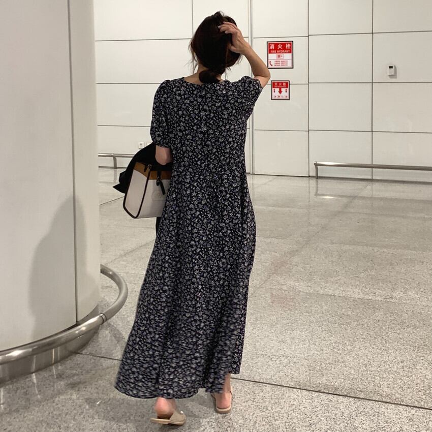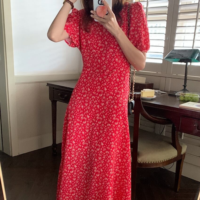 (2色選択可) レディース ワンピース マキシ マキシ丈 袖あり 半袖 ボリューム袖 パフスリーブ ラウンドネック 裾フレア プリーツ シフォン ウエストマーク バックリボン 小花柄 フラワープリント かわいい きれいめ おしゃれ ラブリー キュート ガーリー ルーズ 個性的 セクシー S M 白 ホワイト オレンジ 春カラー 無地 春 夏 謝恩会 二次会 10代 20代 女性用 OL 学生 デート お出かけ 女子会 パーティー リゾート 海 韓国 オルチャン モテ インスタ映え | Chère