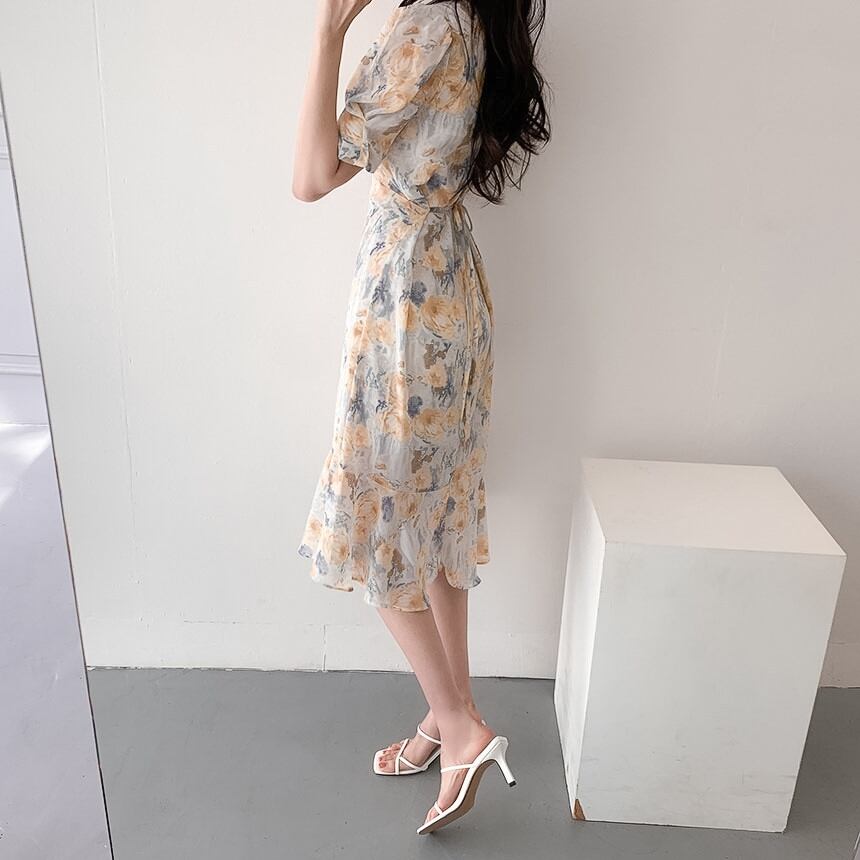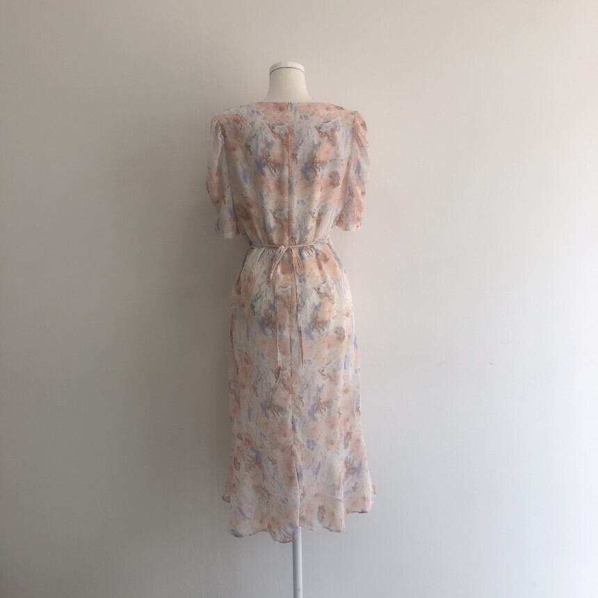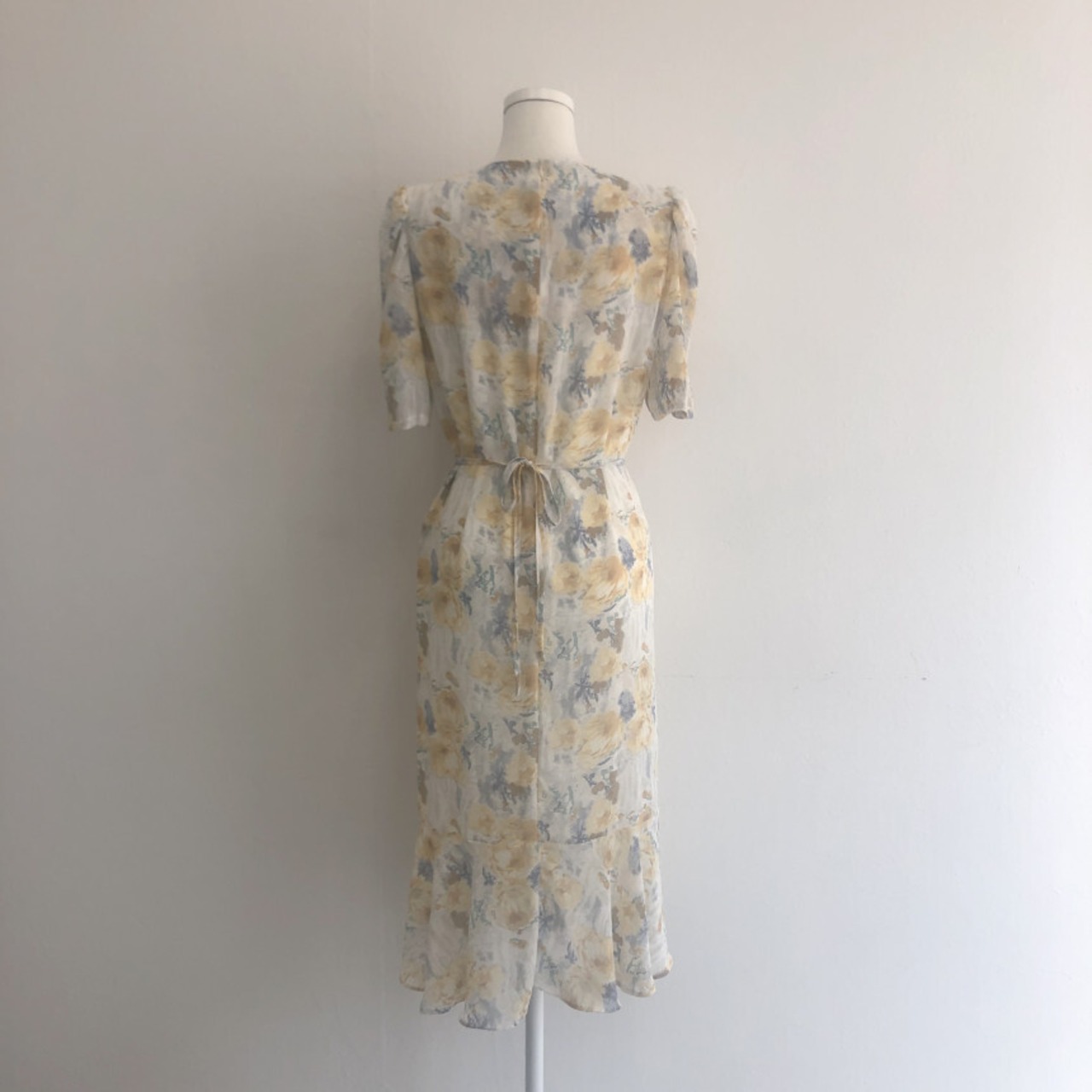涼し気な透け感のあるフリルと淡い花柄が大人の女性を演出するワンピース♡