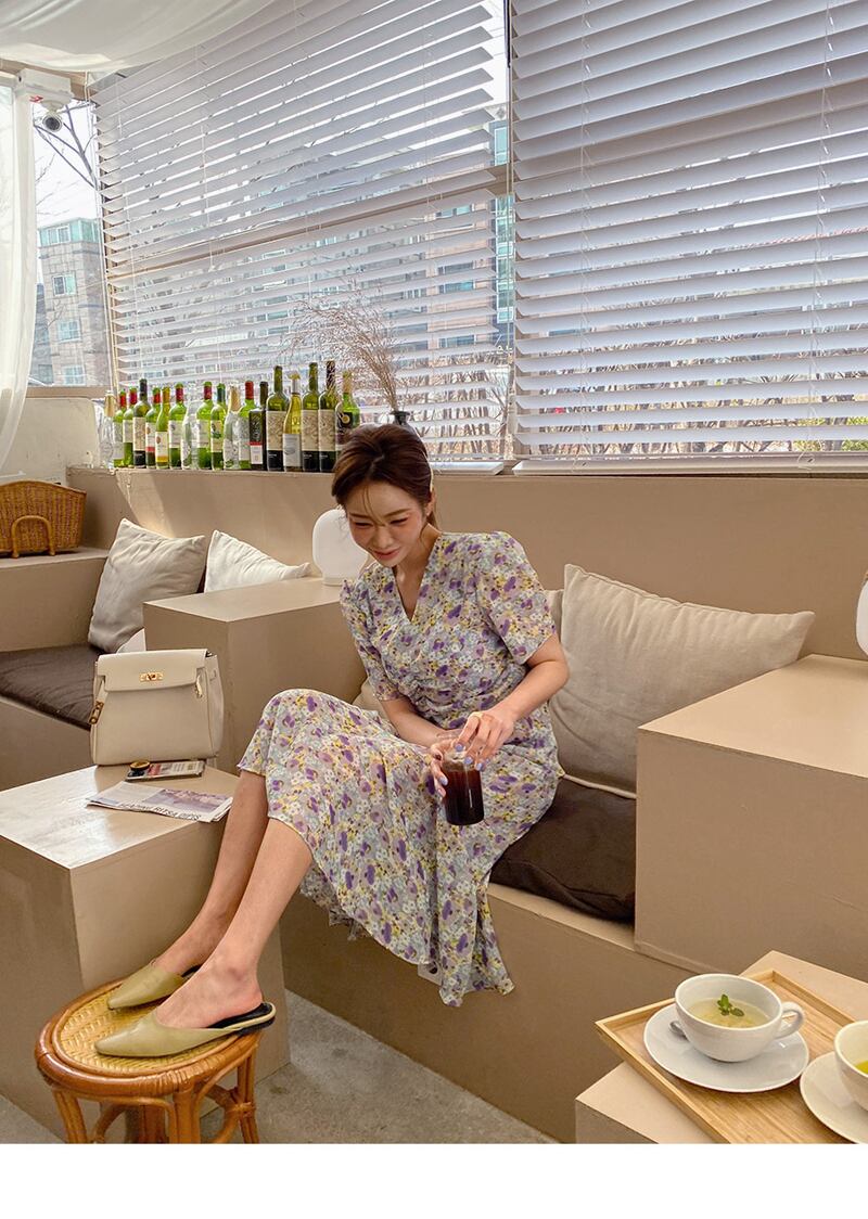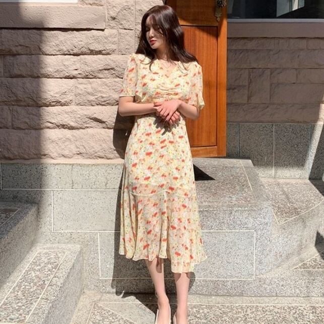 (2色選択可) ワンピース ワンピドレス ミモレ丈 半袖 Vネック Aライン シャーリング ポリエステル かわいい 大人可愛い きれいめ 大人 上品 おしゃれ レトロ 大人女子 こなれ感 ラブリー キュート ガーリー エレガント モダン 主役級 存在感 小花柄 春 夏 秋 20代 30代 40代 OL 通勤 デート お出かけ お泊まり 休日 イベント リゾート 旅行 高原 ホテル ガーデン レストラン 着回し 楽ちん モテ トレンド 流行 インスタ映え イエロー | Chère