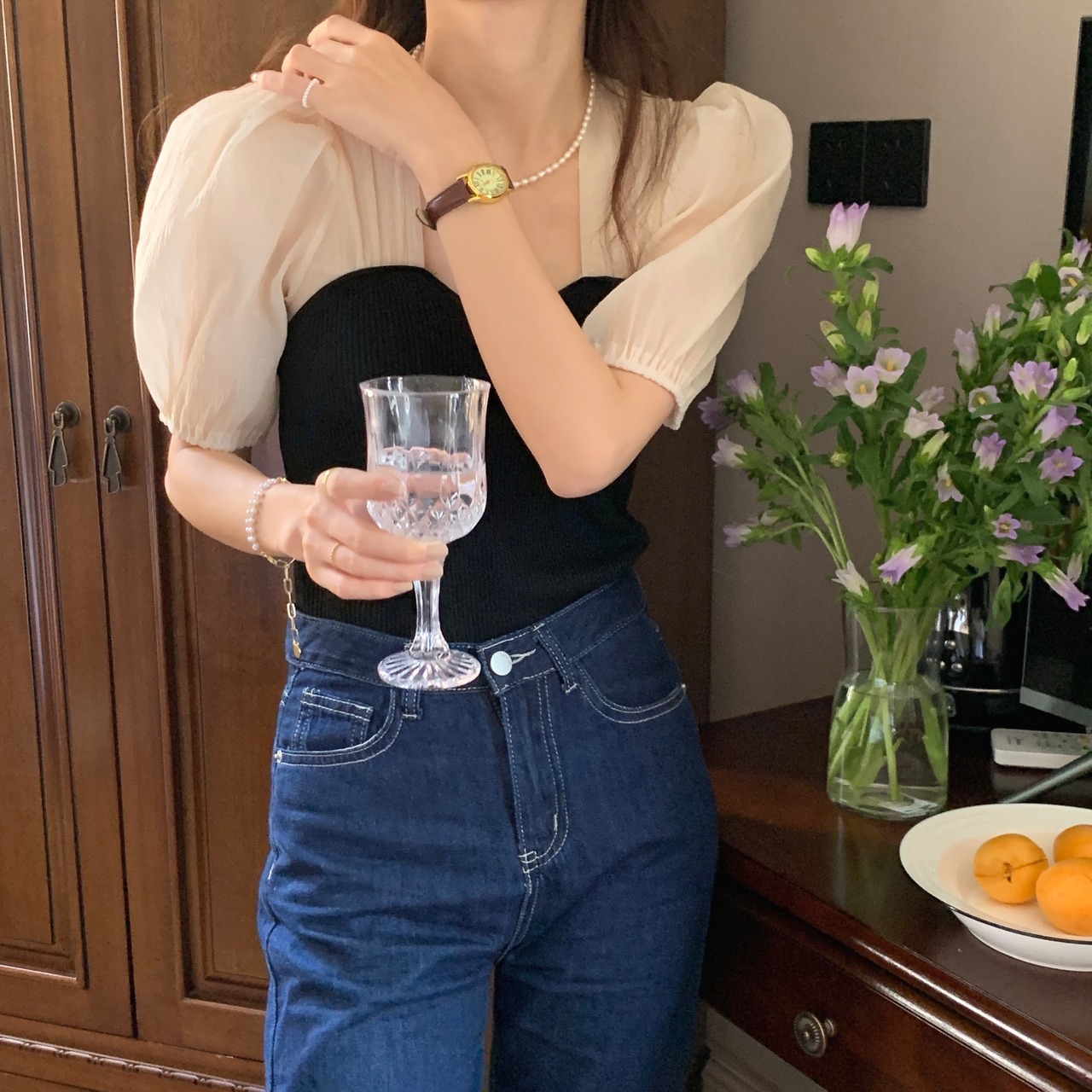 シースルーのシフォンの袖がポイント♪